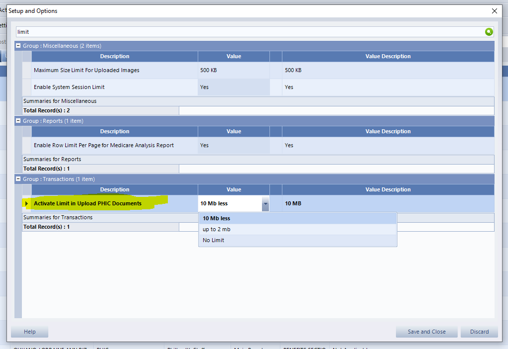 ACTIVATE LIMIT IN UPLOAD PHIC DOCUMENTS