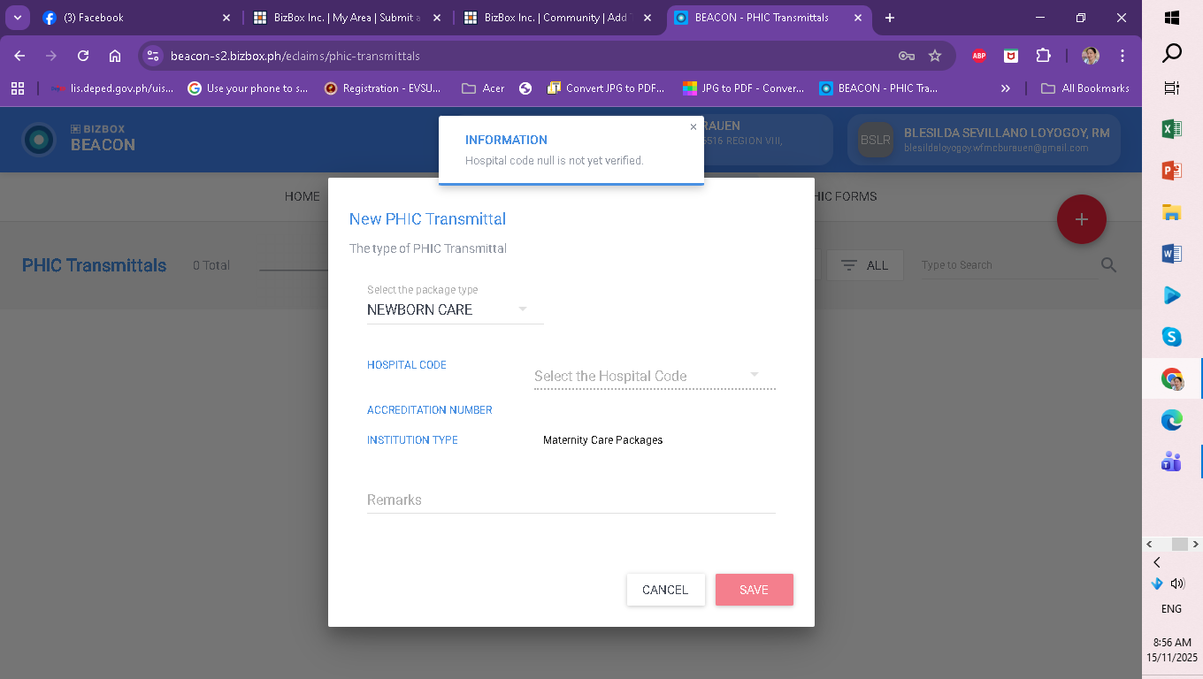 Please verify hospital code 637 for Well Family Midwife Clinic Burauen. The system is still down, we have claims to be sumbitted that has been beyond 60 days already. Nakaka sad hindi kami makapasa at hindi mababayaran ng Philhealth. We pain naman po for this service. Please help us.