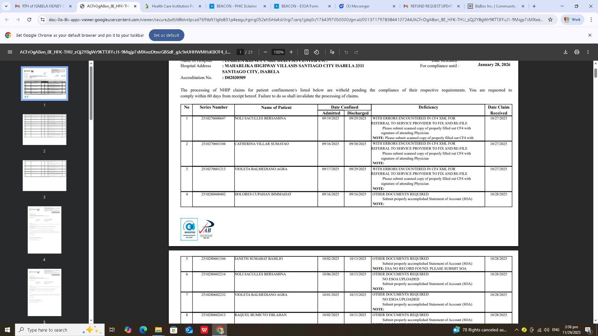 "tinanong din po namin before si philhealth kung bakit no record found in esoa pero pag inoopen naman namin yung claims na yun may uploaded esoa naman, ang sabi po ni philhealth baka daw po problem ng system provider namin.