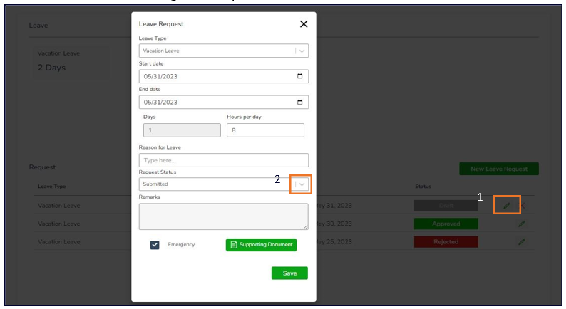 File Leave Request – Change request status