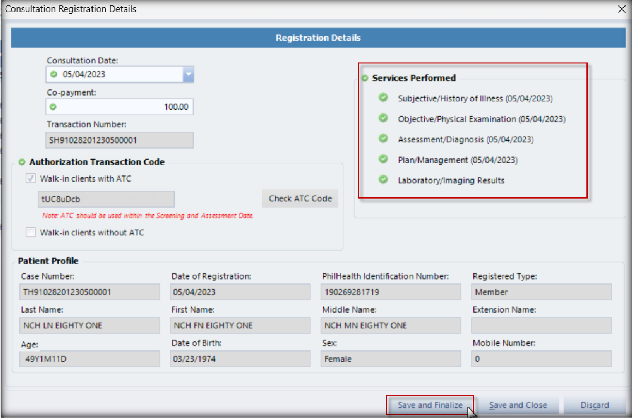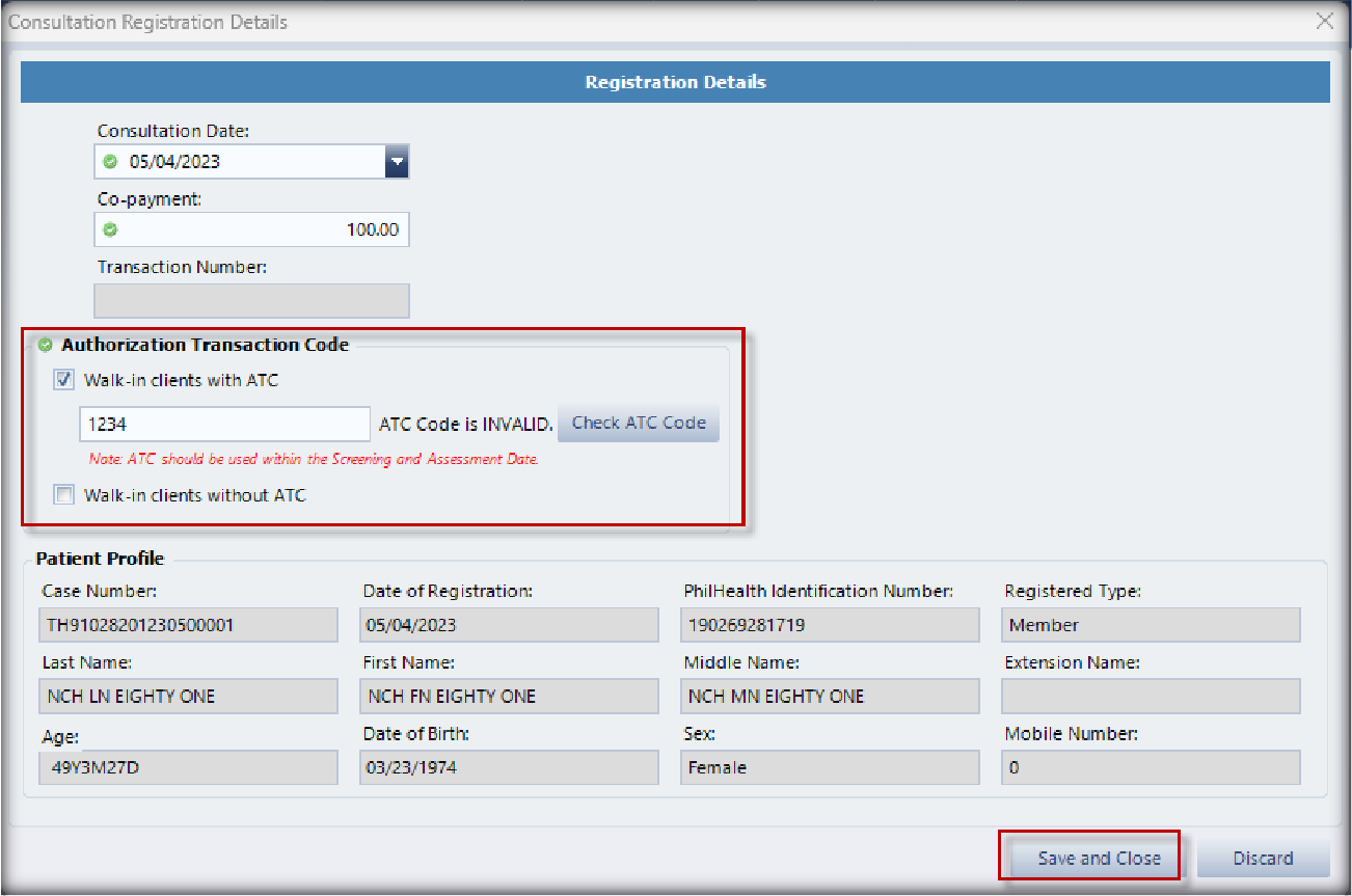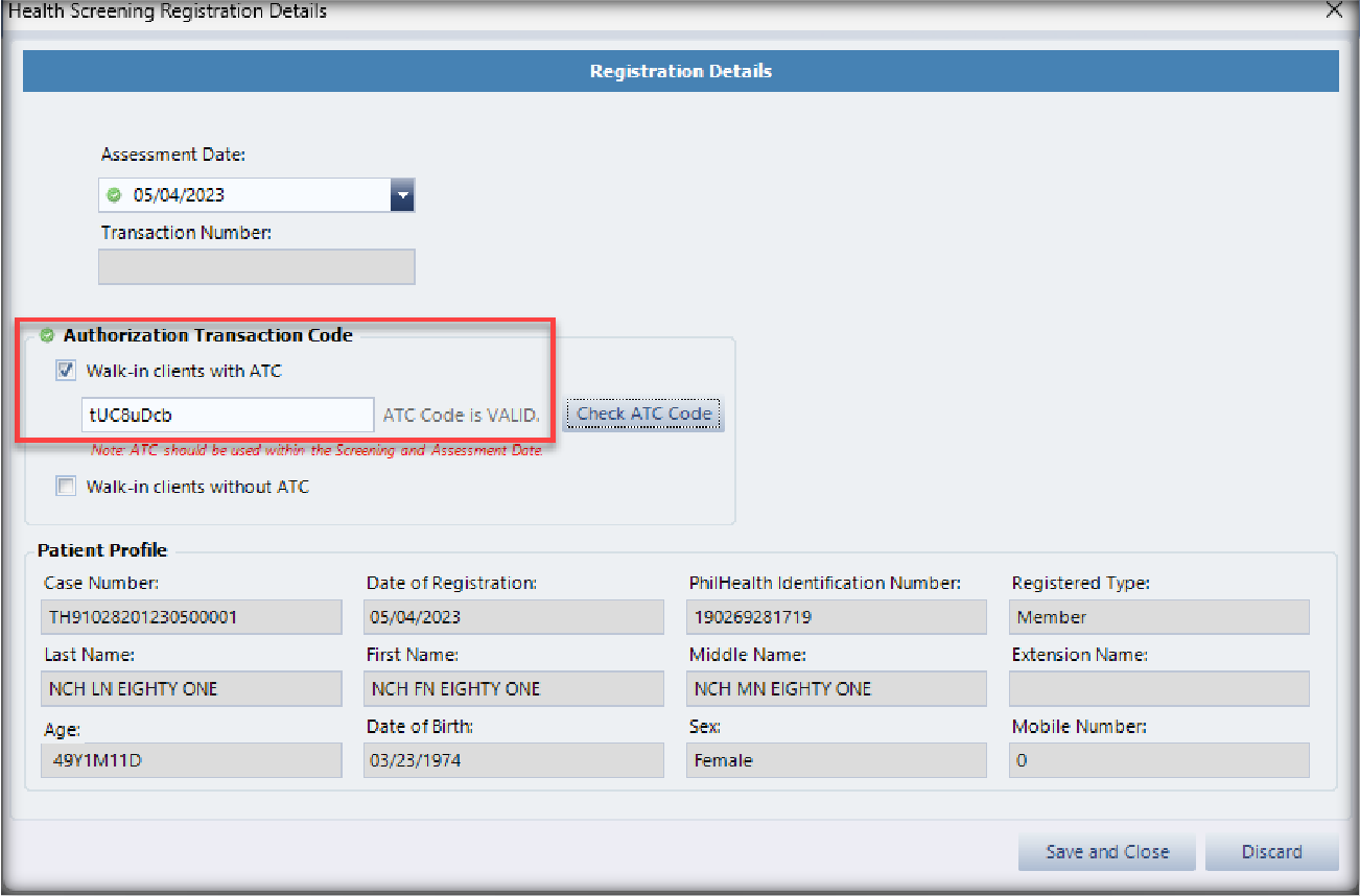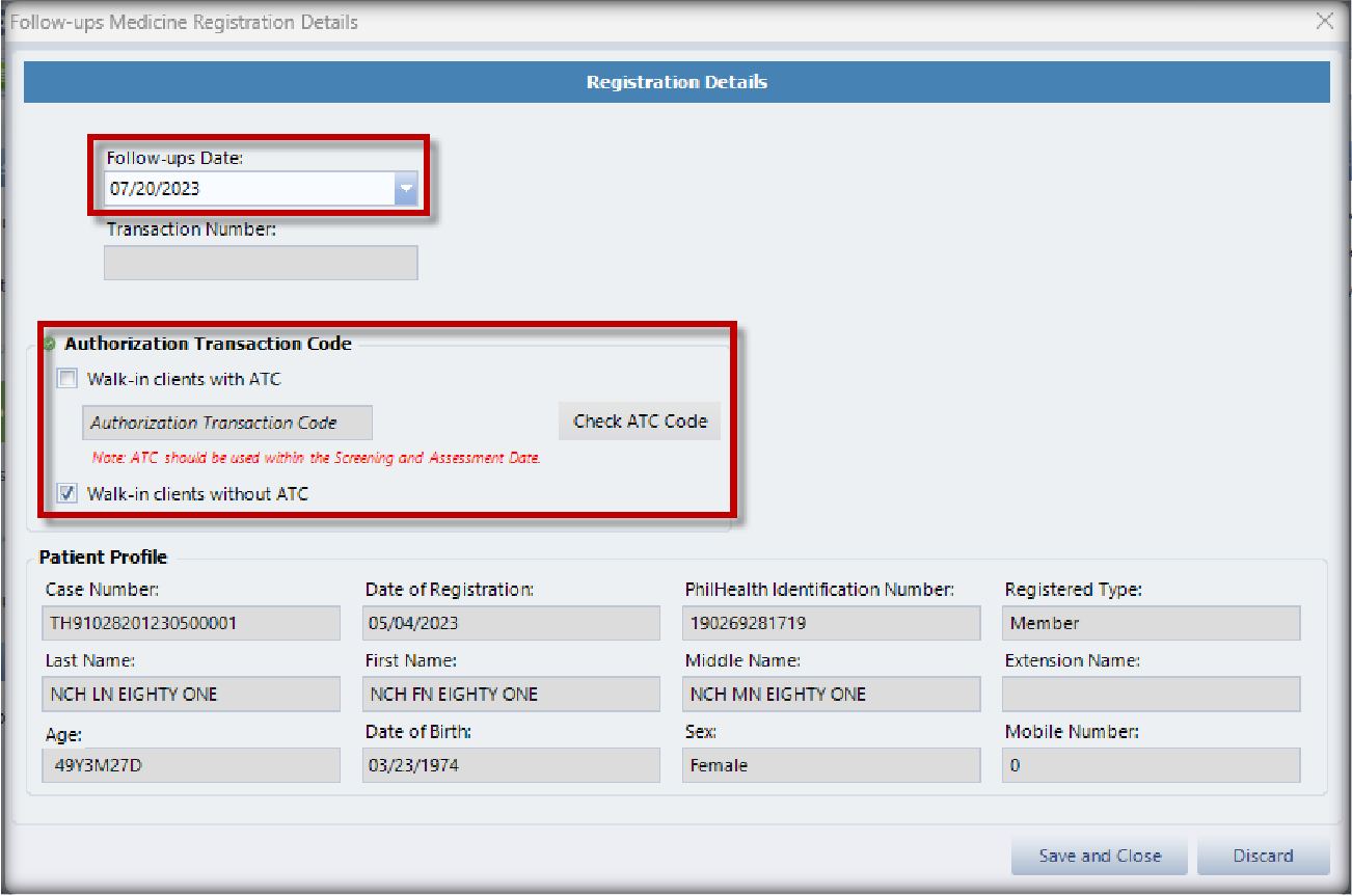 5. In Authorization Transaction Code (ATC) encode the Walk-in clients with ATC if the patient is with ATC from Philhealth. Otherwise check on Walk-in clients without ATC.