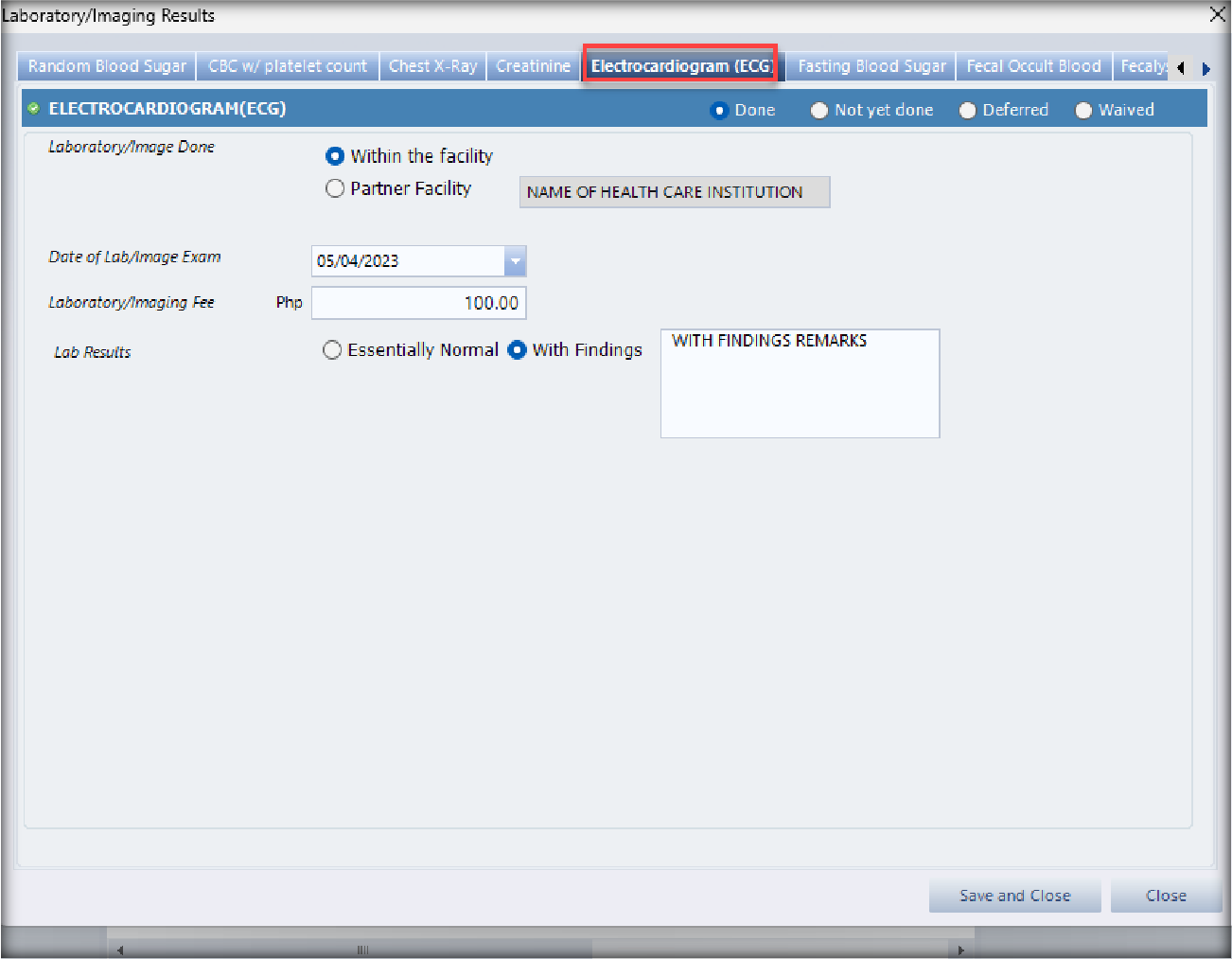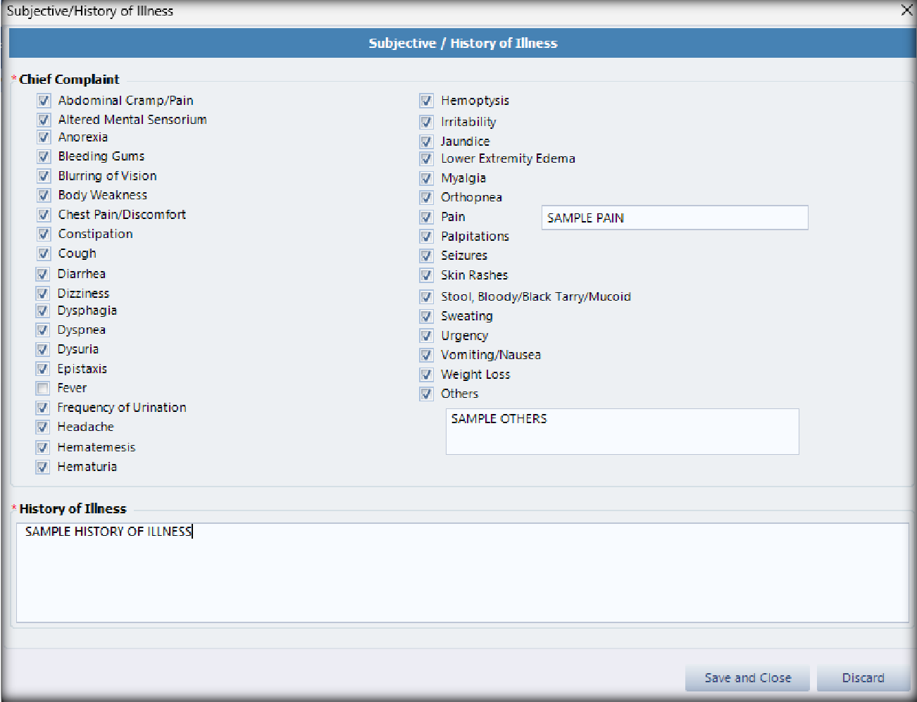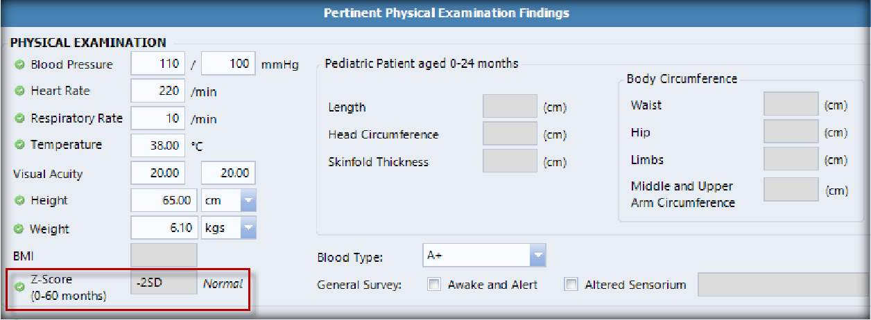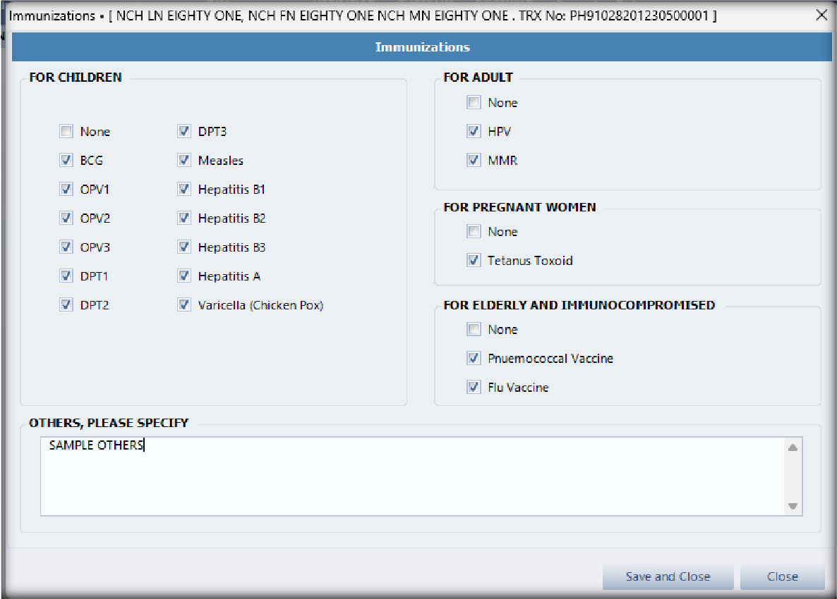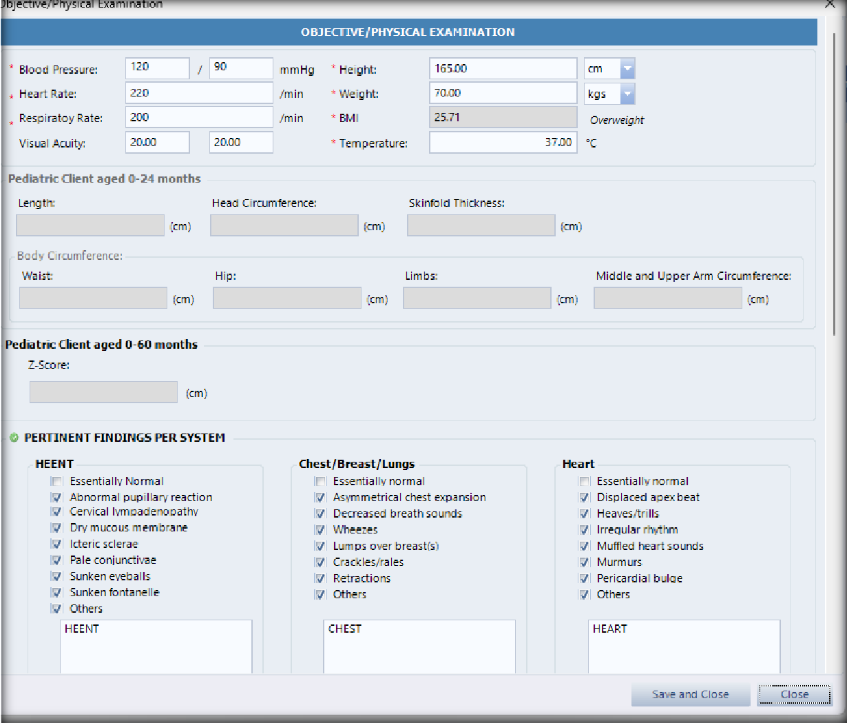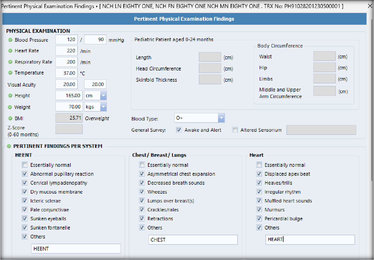 - Physical Examinations – encode the vital signs of patient at the time of Health Screening