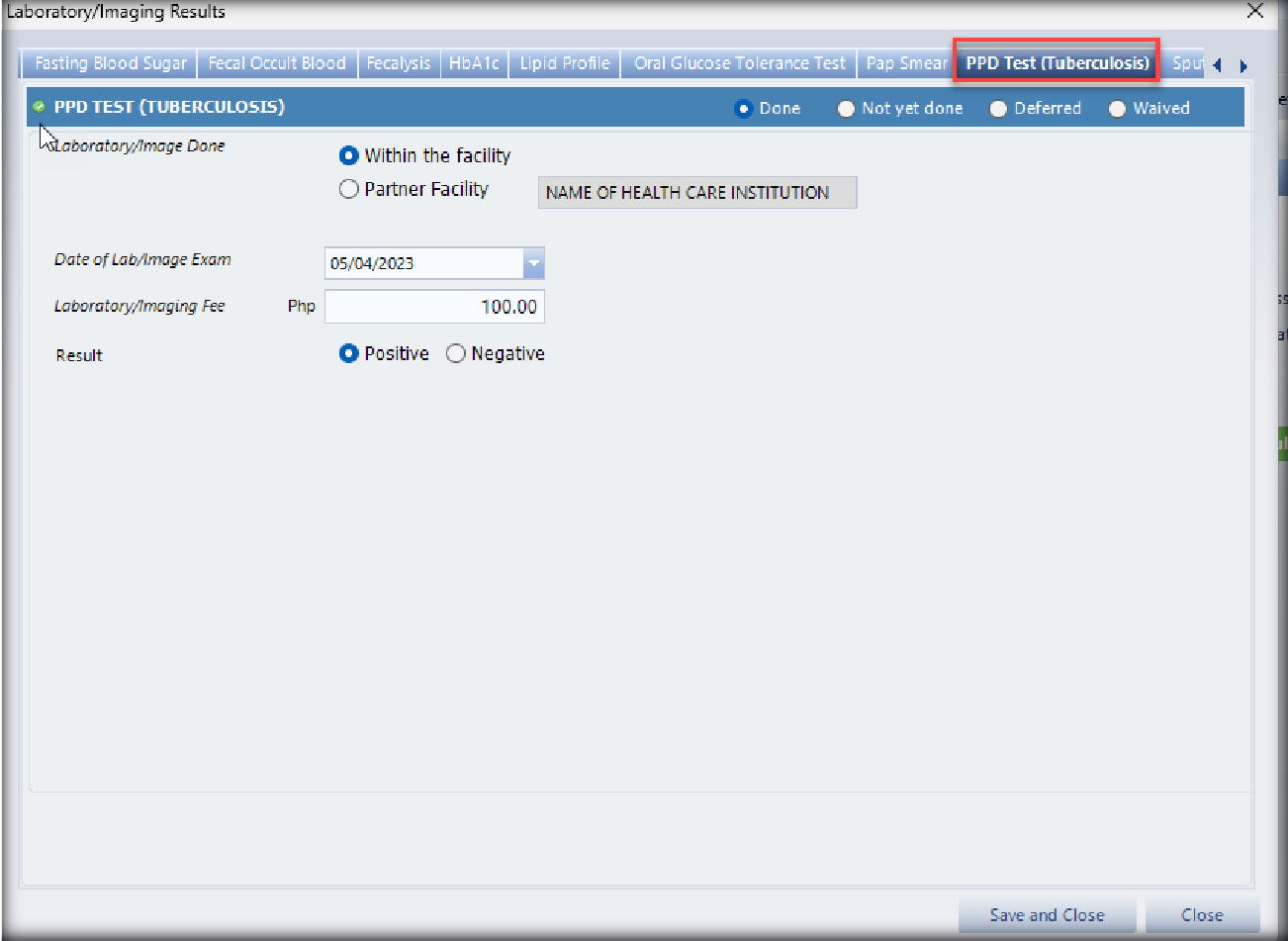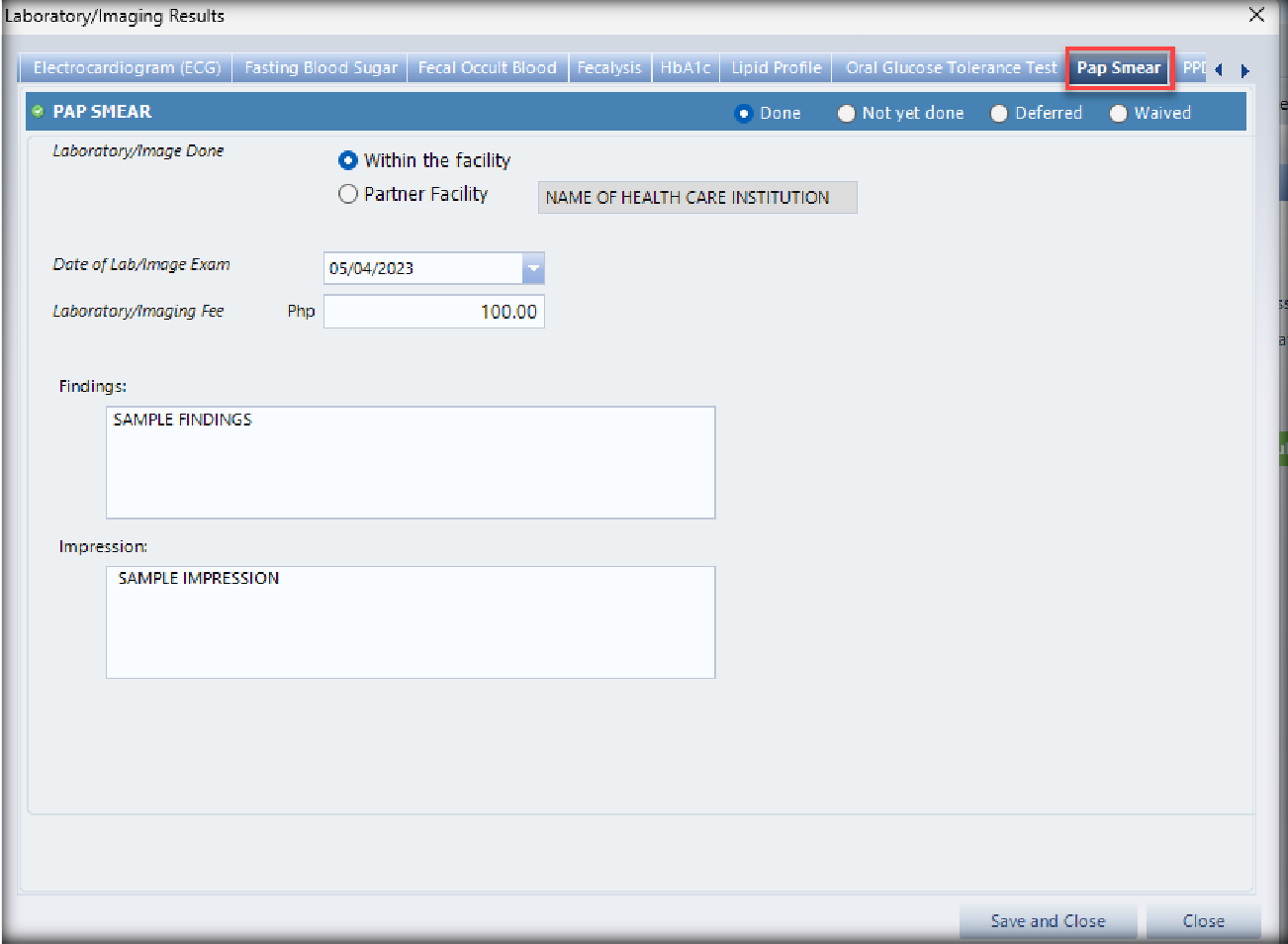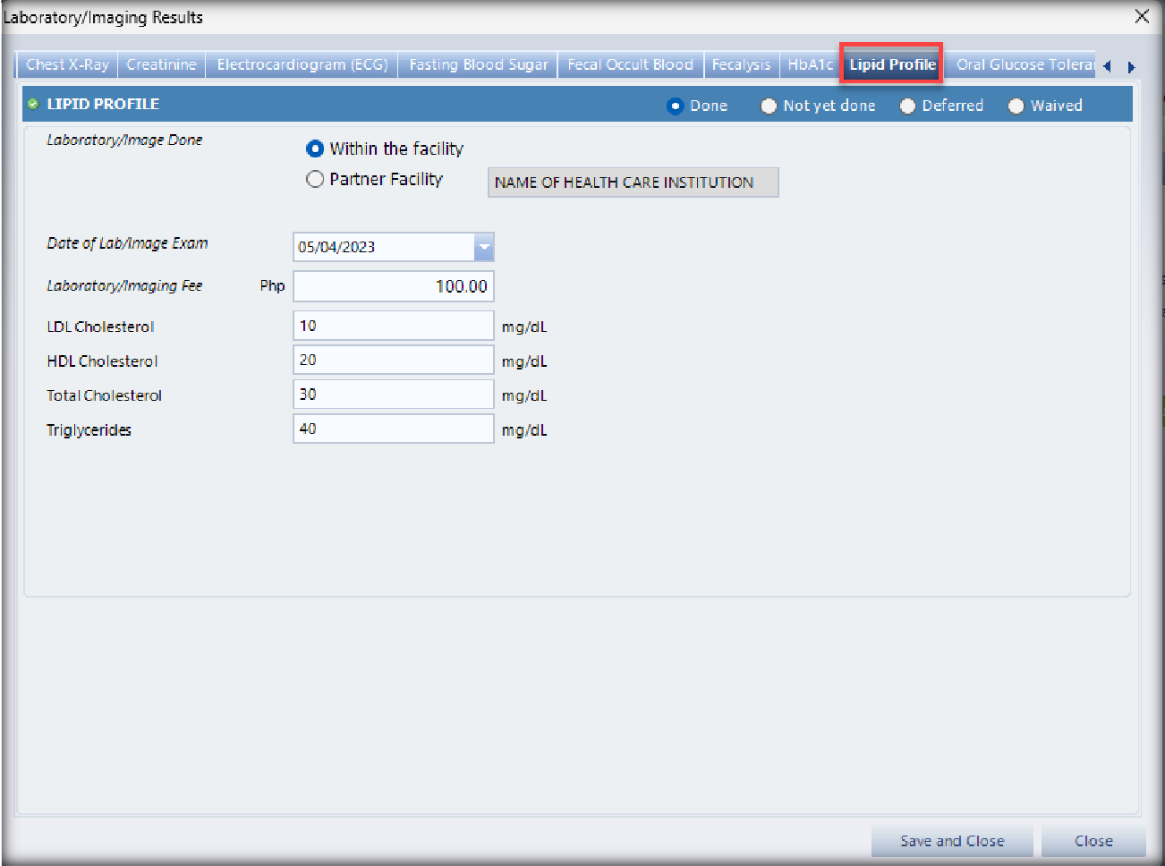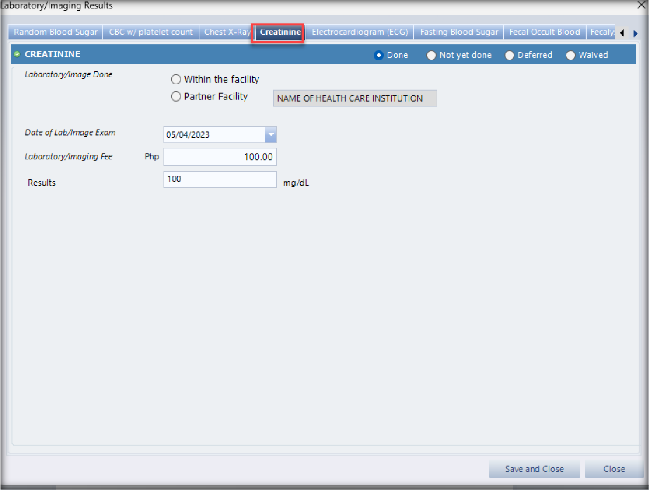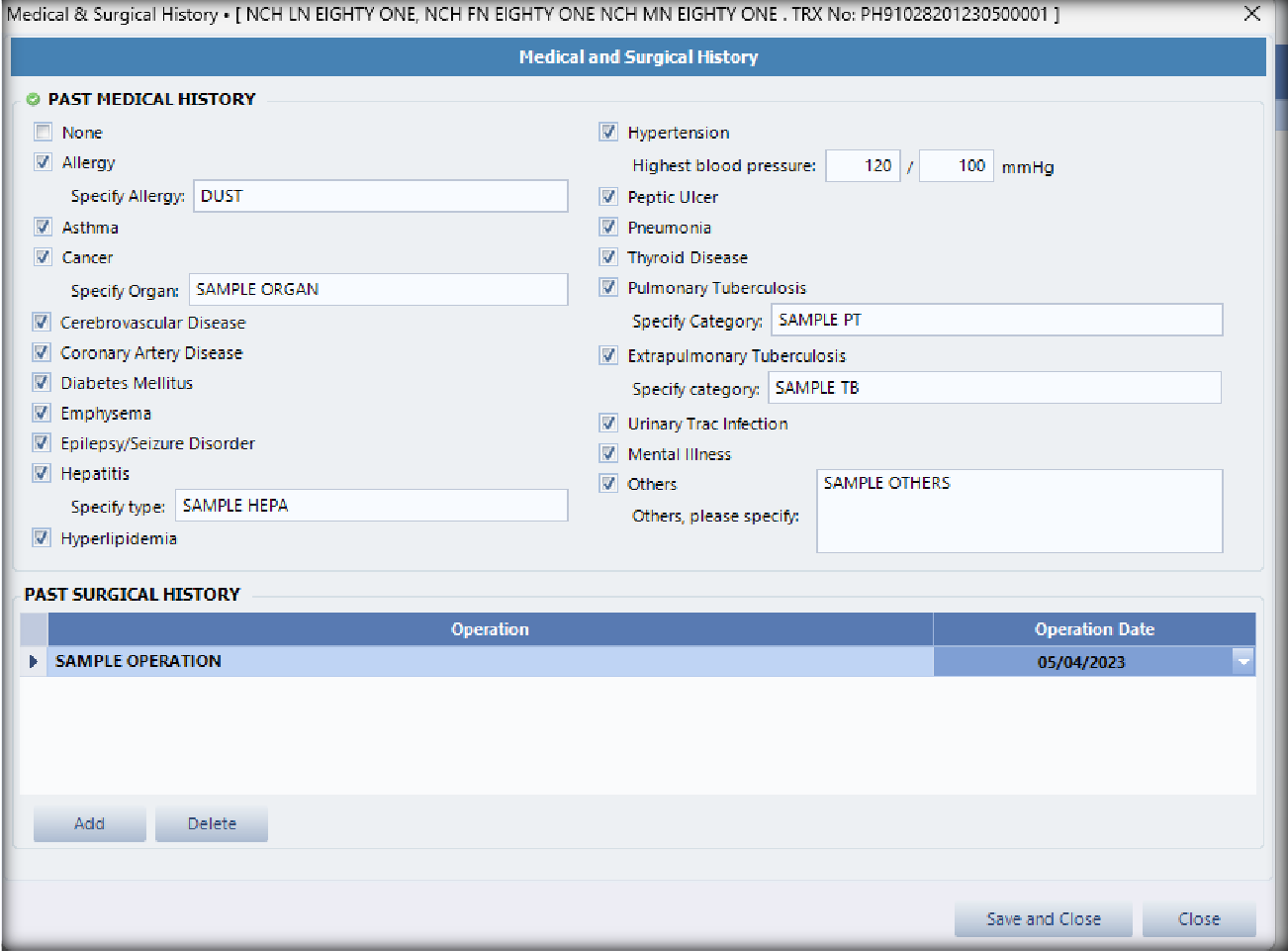 - Physical Examinations – encode the vital signs of patient at the time of Health Screening