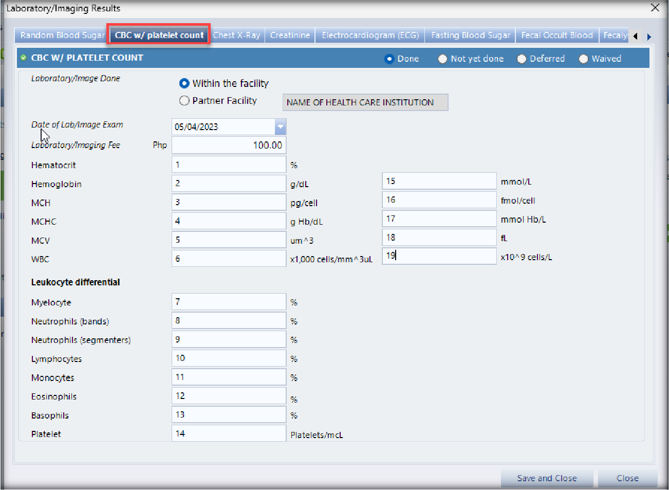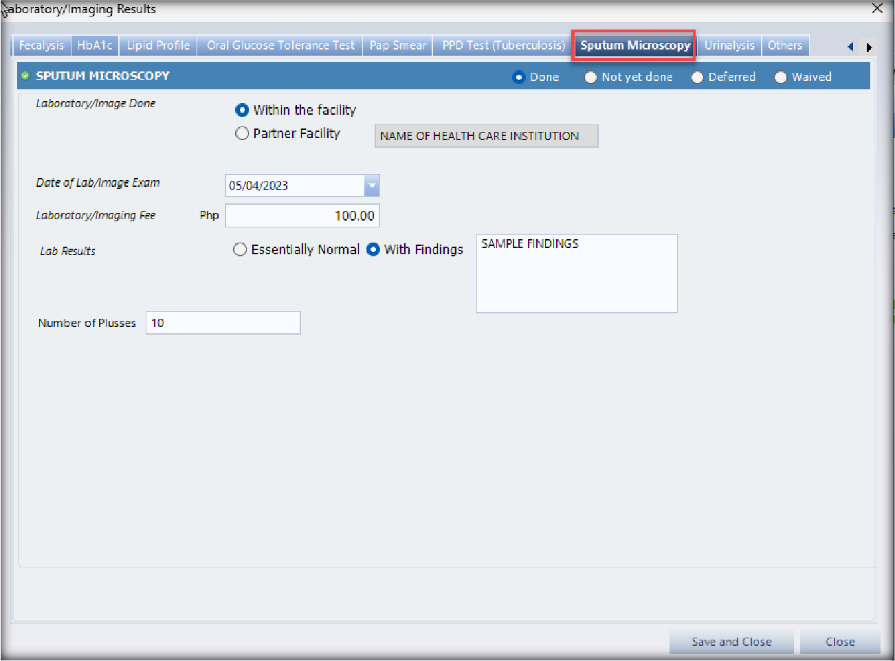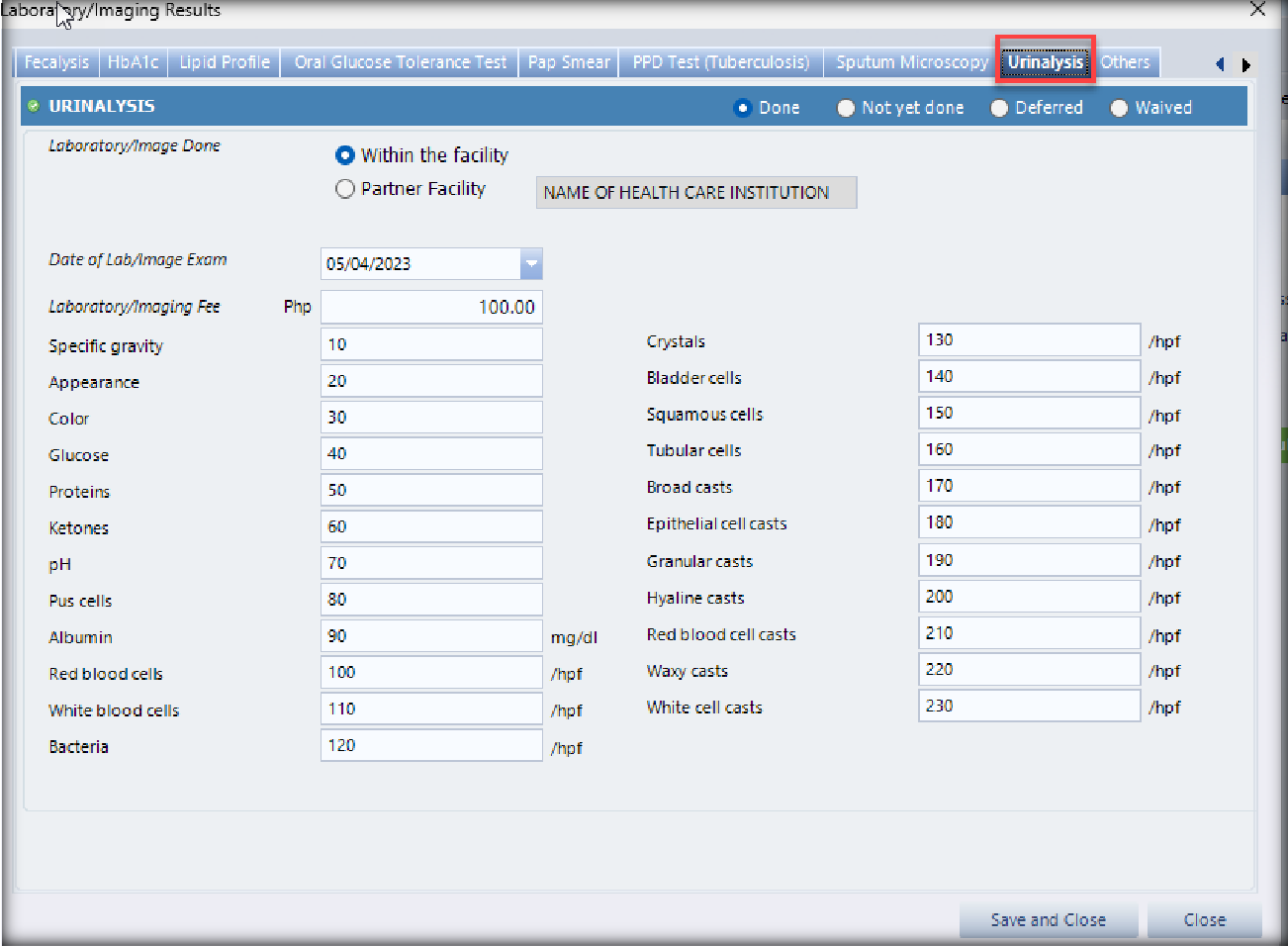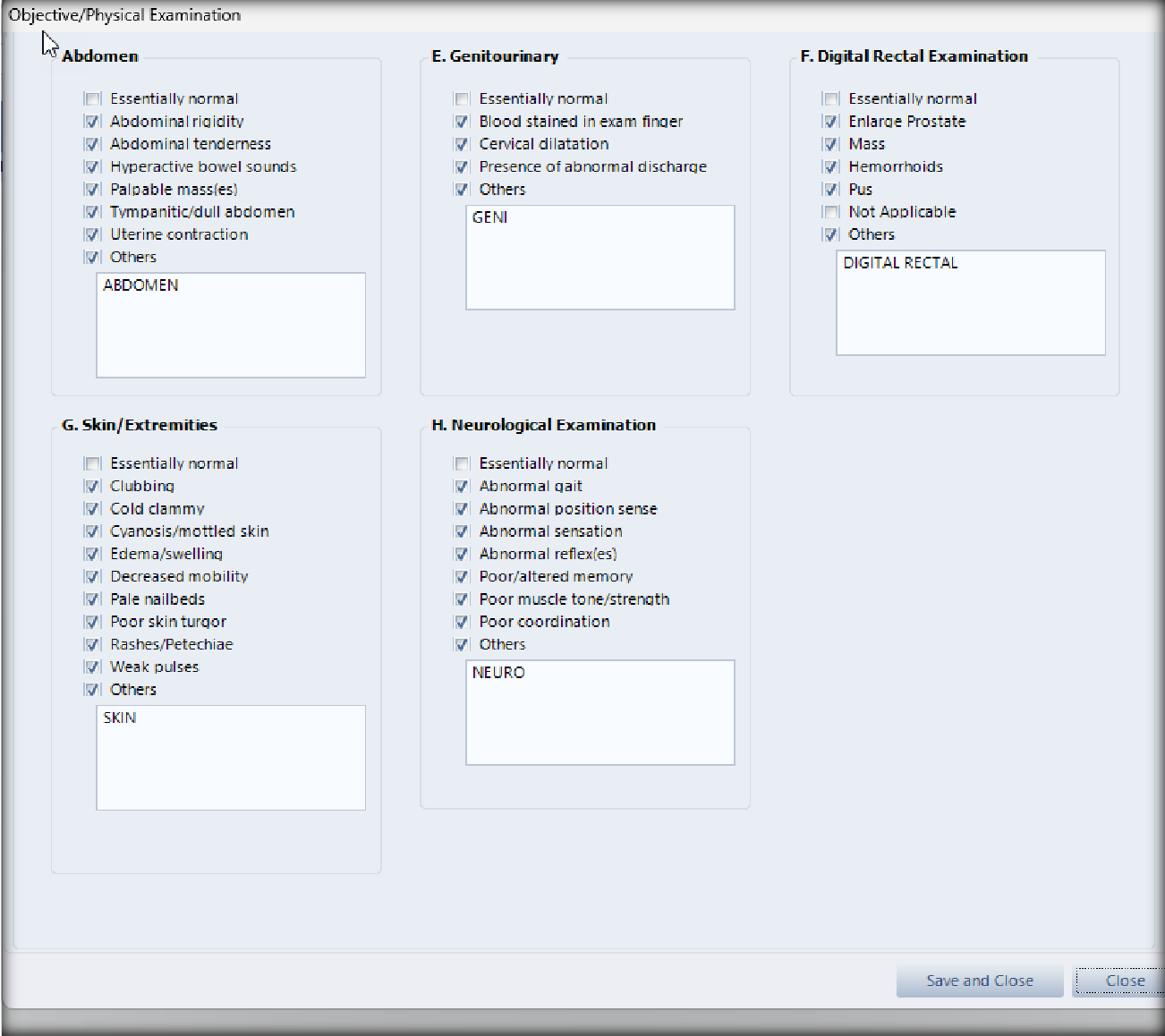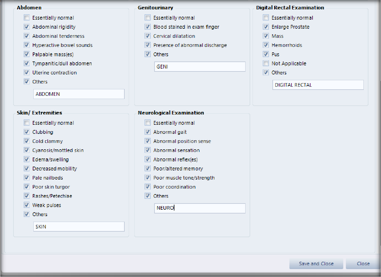 - Physical Examinations – encode the vital signs of patient at the time of Health Screening