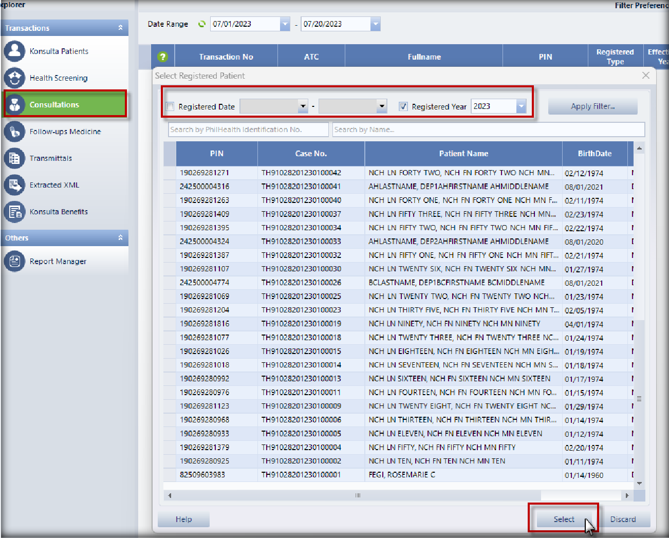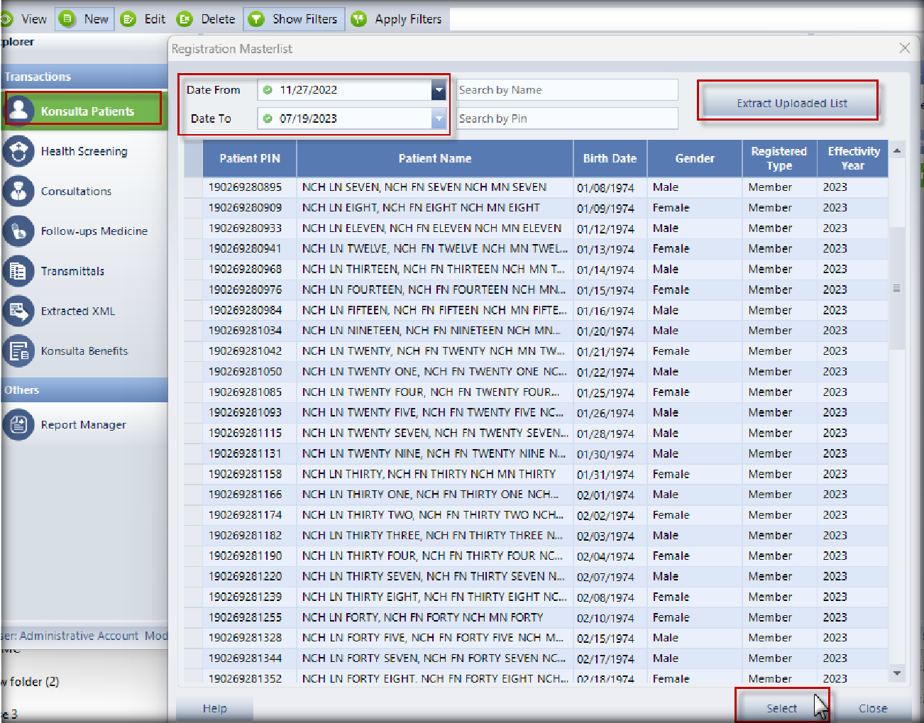 - Define the Date Range where the patient is registered as eKonsulta patient in Philhealth Portal.