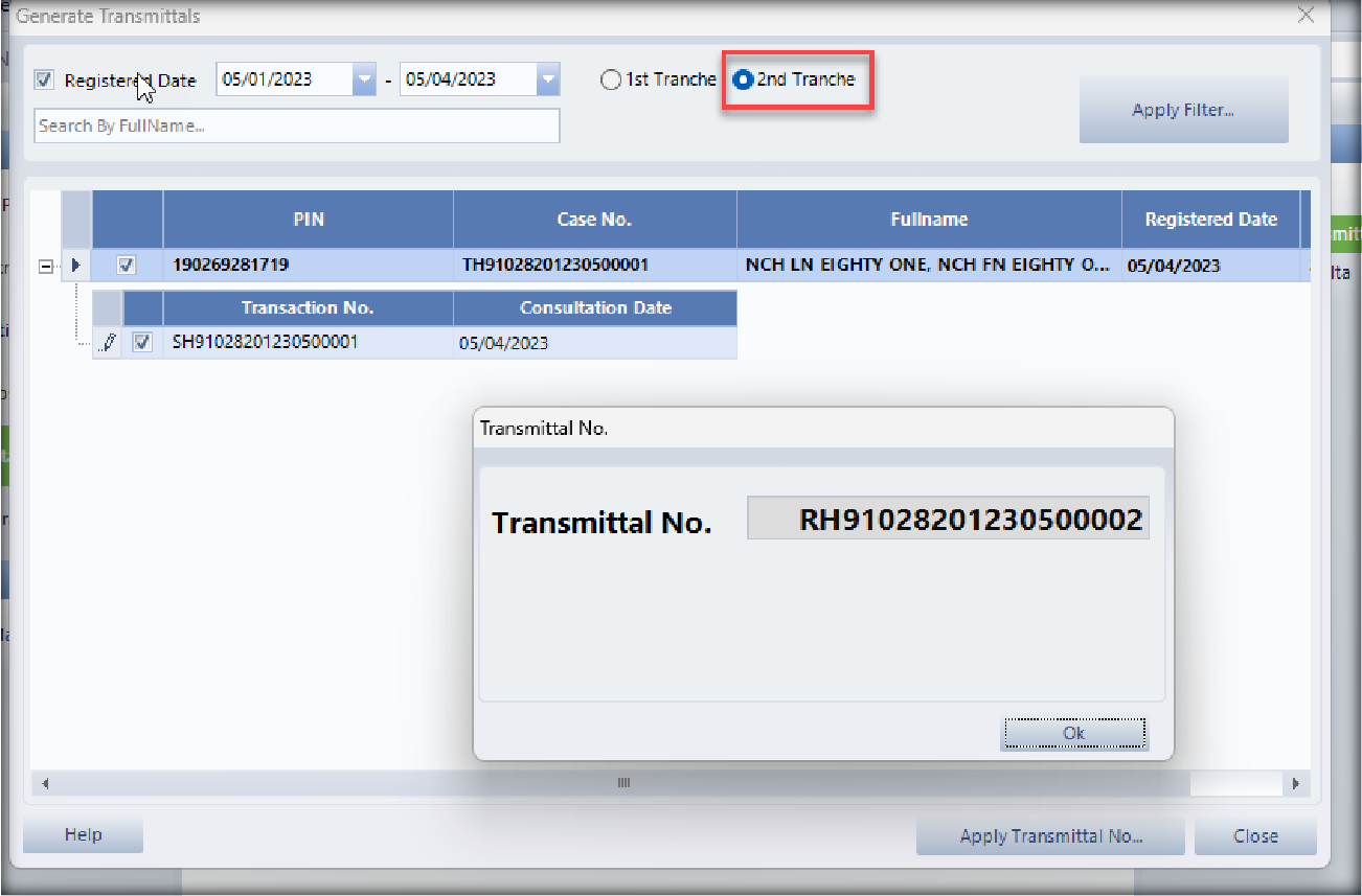 GENERATE TRANSMITTAL FOR SECOND TRANCHE
