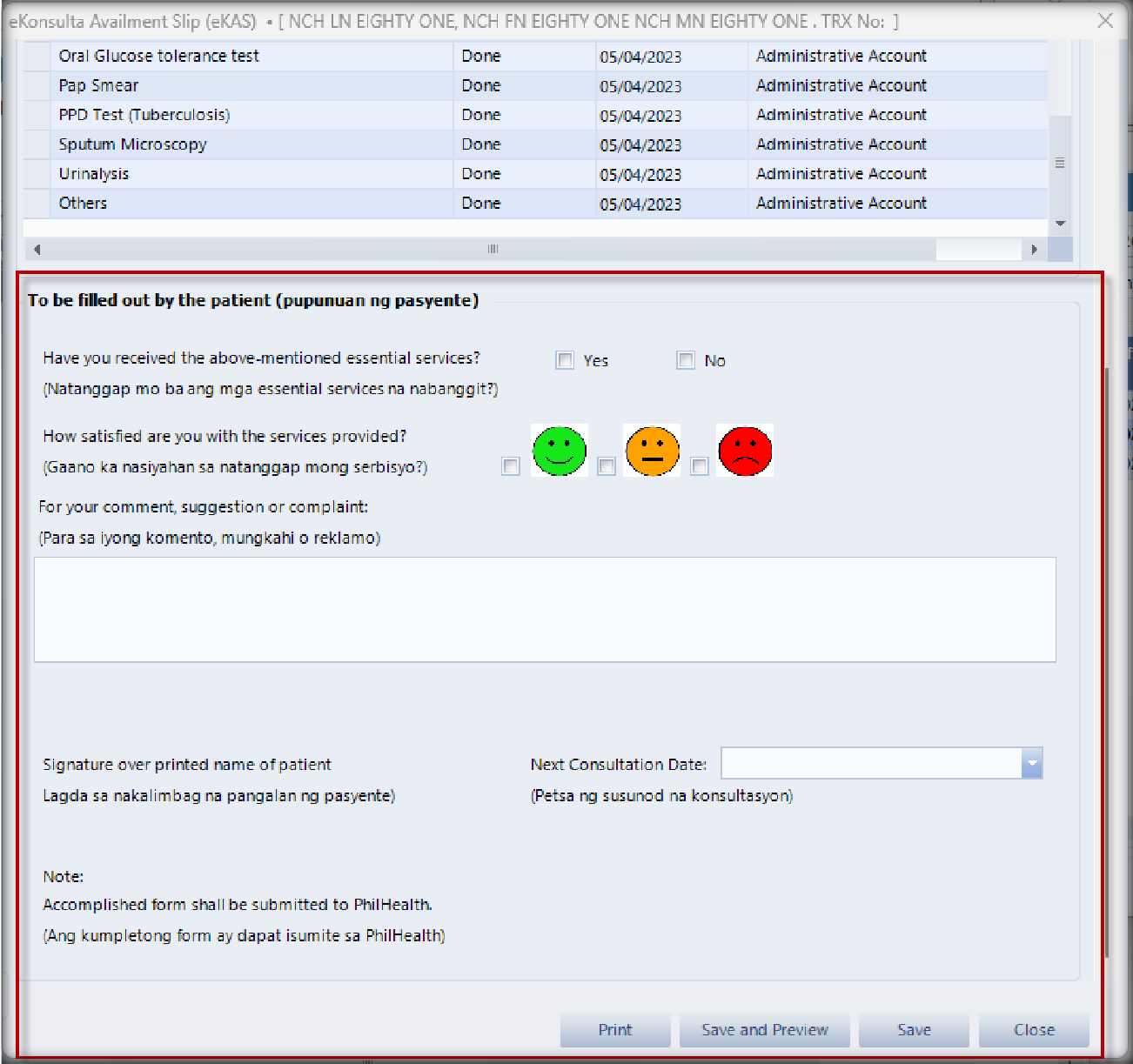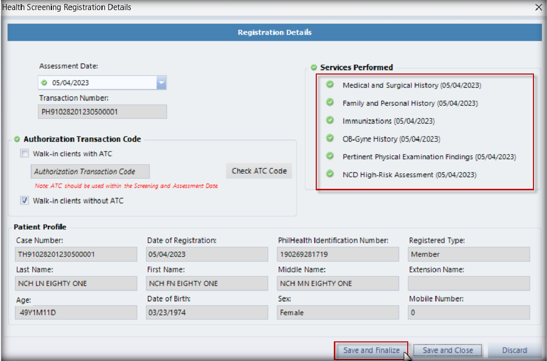 - The system also has a checklist of the Health Screening Module to serve as a guide for our user during the finalization.