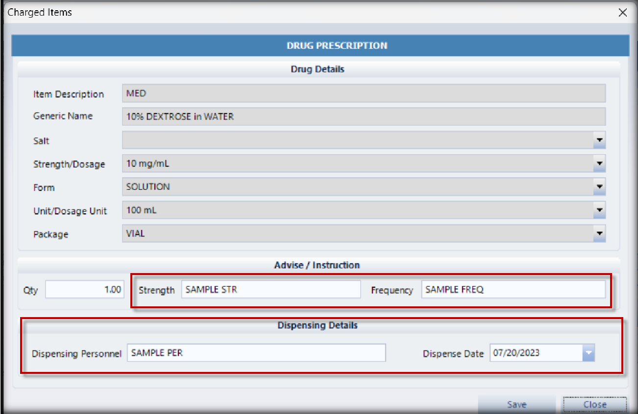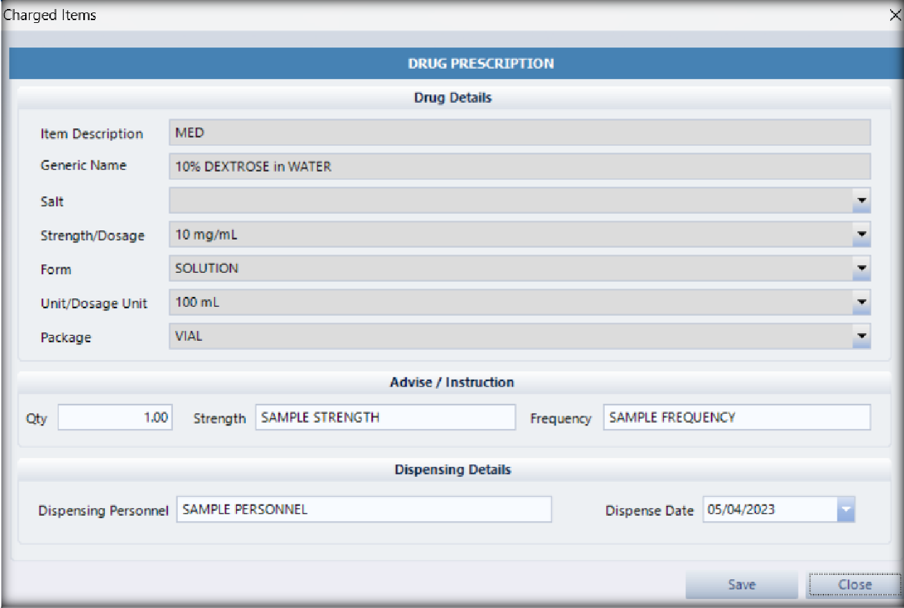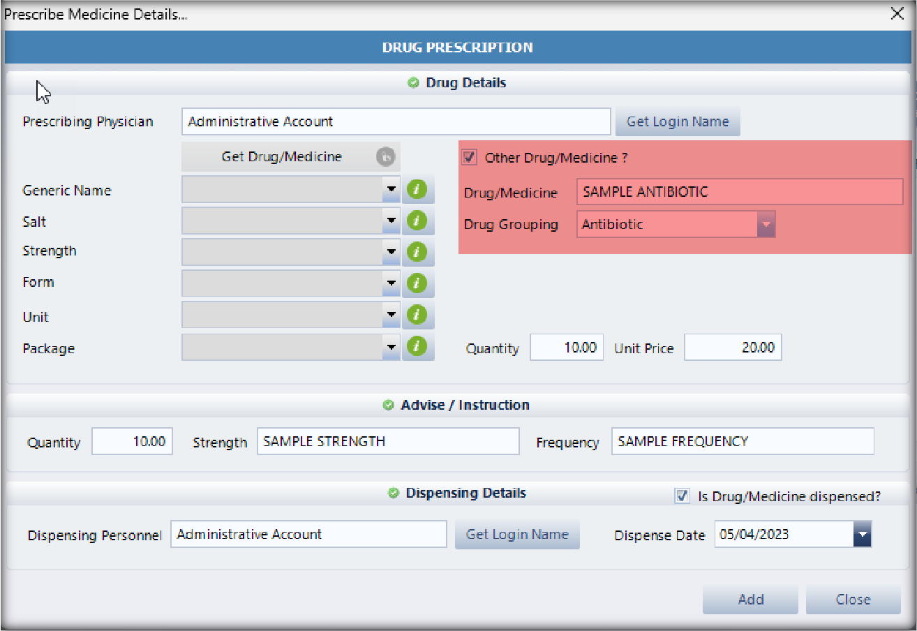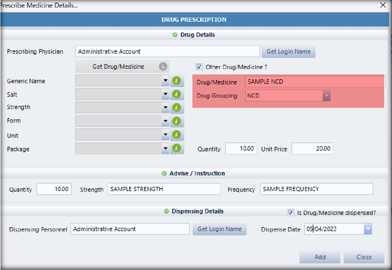 15. If in case the user would like to add Outside Charges, you may proceed to Other Charges and add medicine charges. Please follow the discussion in Consultation – Plan/Management – Dispensing Medicine.