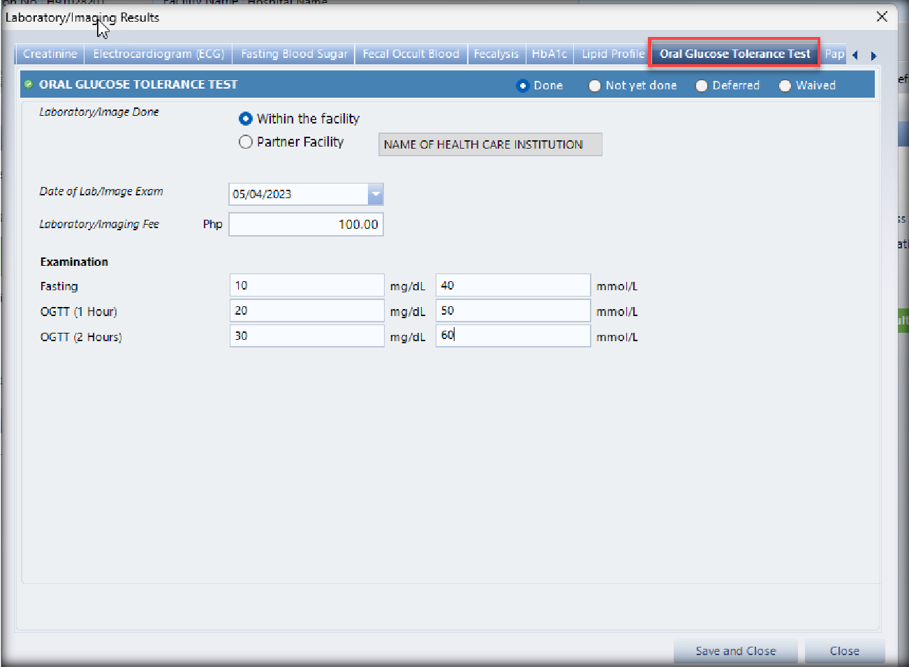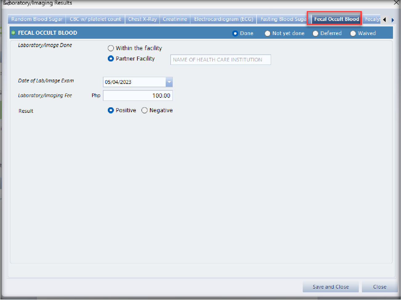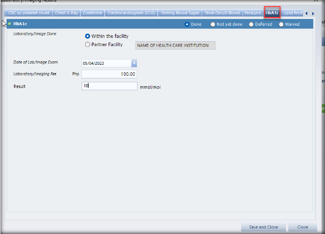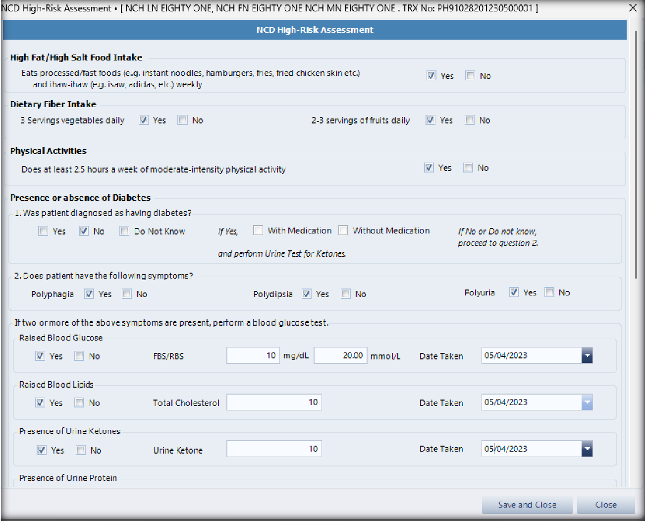 In Family and Personal History module, when clicking Diabetes Mellitus, the user may encode the Fast Blood Sugar (FBS) or Random Blood Sugar (RBS) of patient