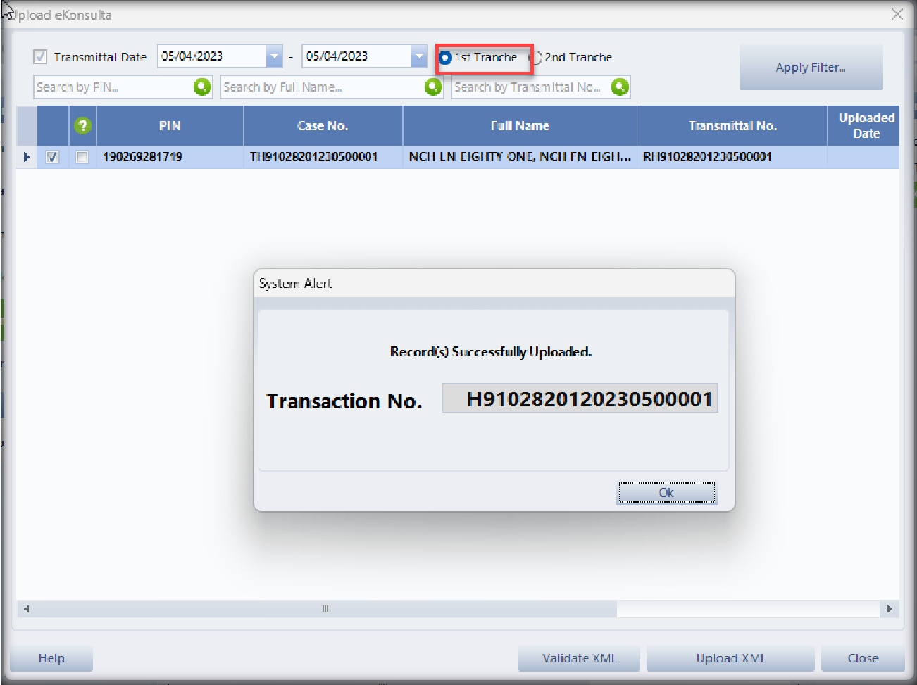 Submit First Tranche Konsulta Report: Transaction No. H9102820120230500001