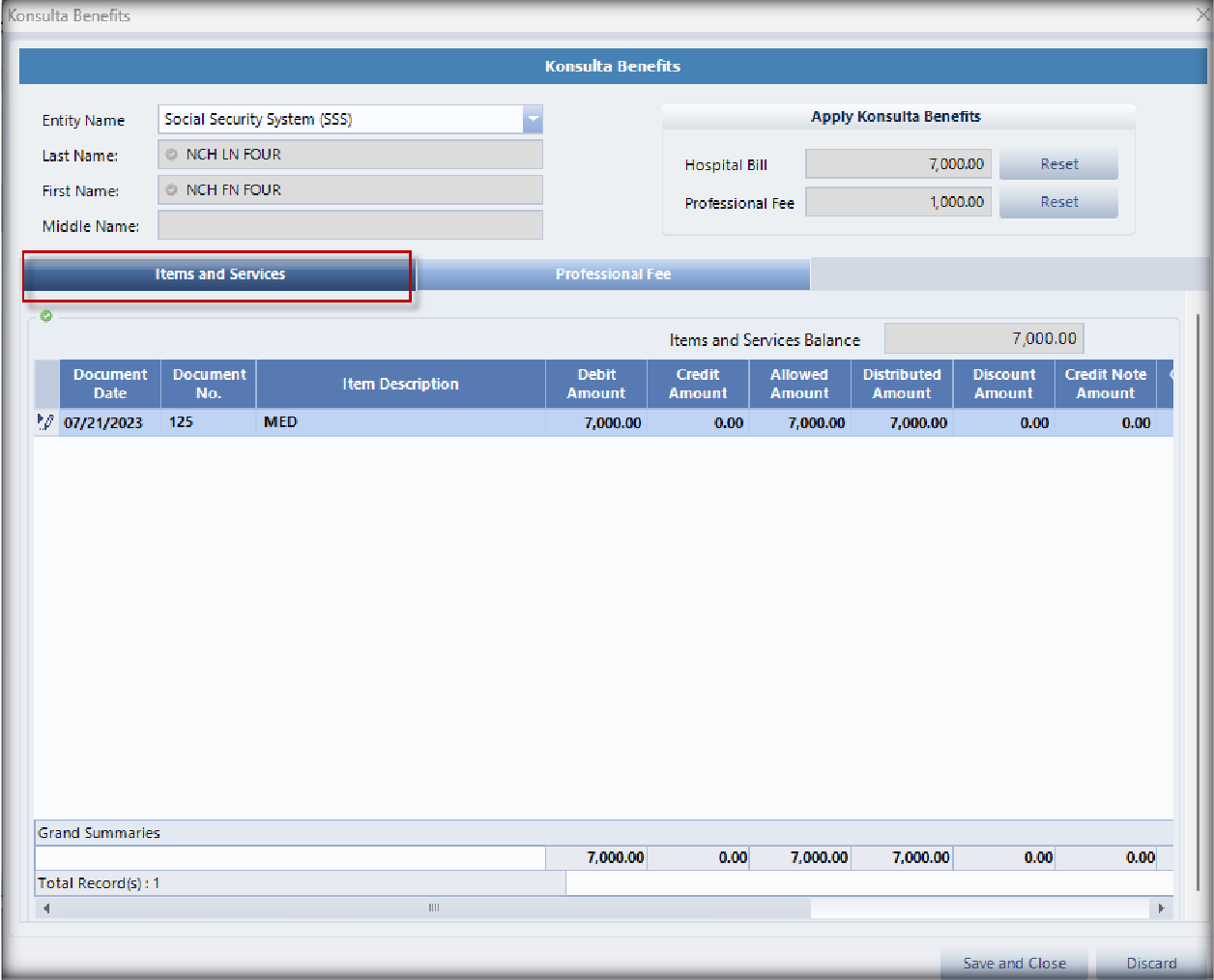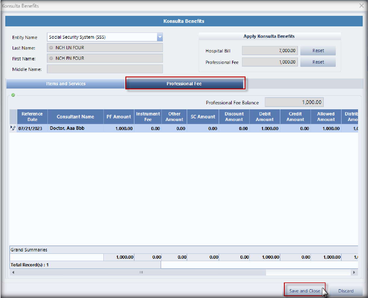 2. Konsulta Benefits Module will appear. Process the Konsulta Benefits by settling the charges of Patient