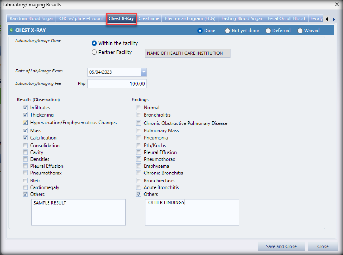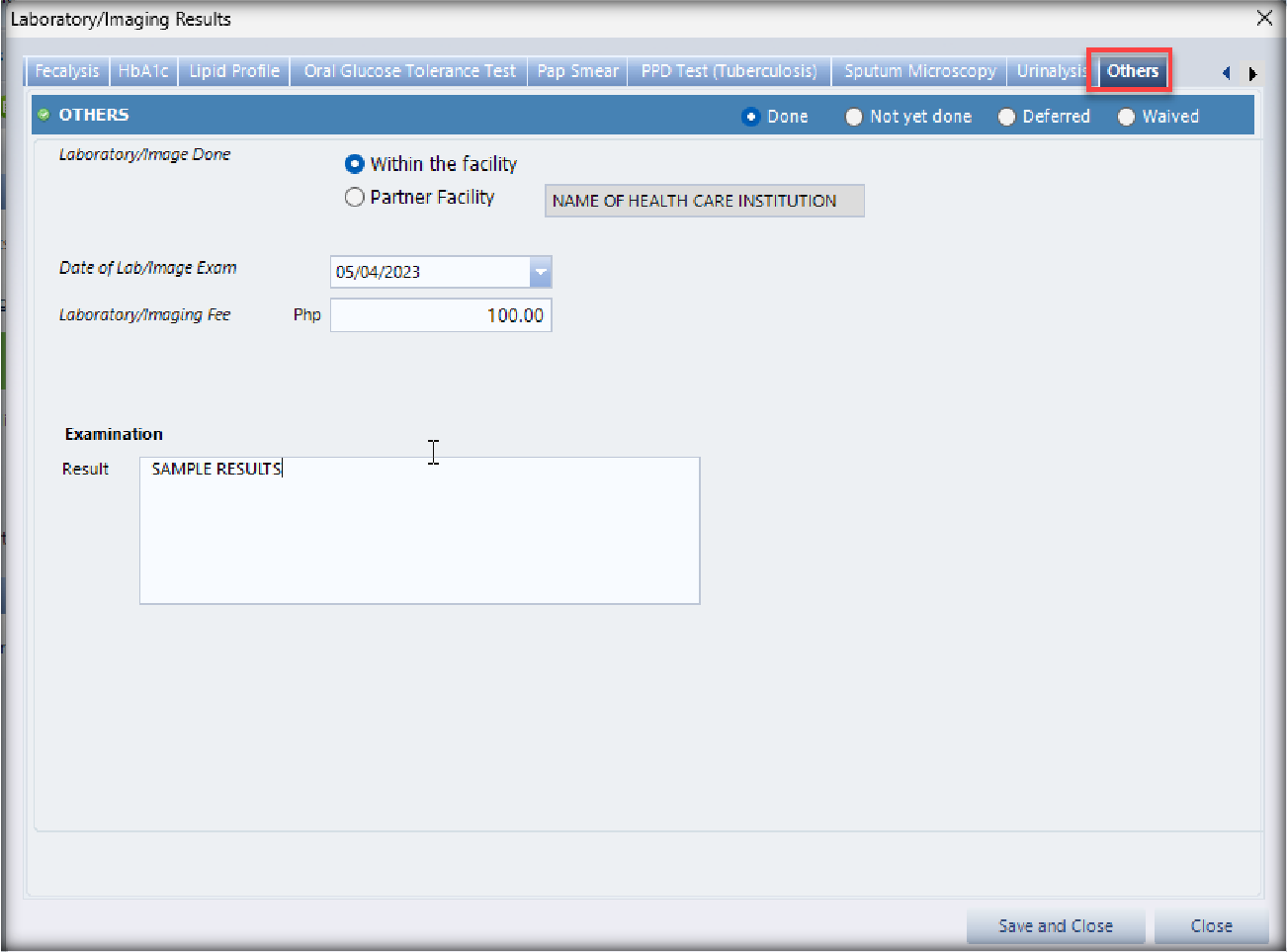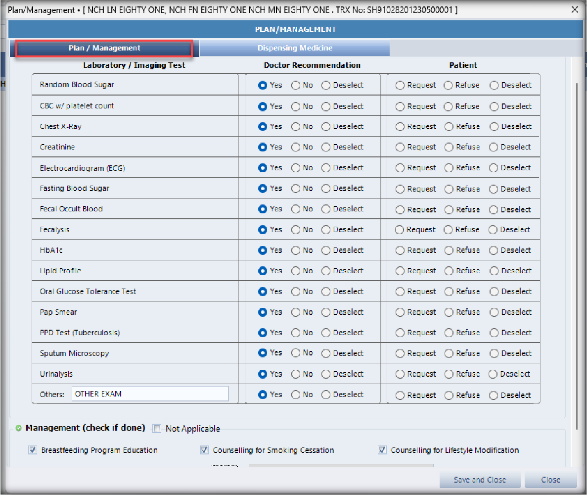 OTHERS (will only appeared when you encode Other Exam in Plan Management module)