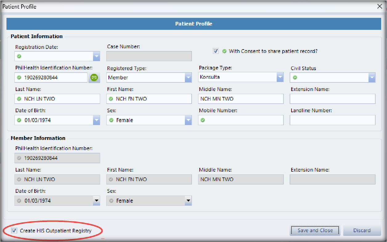 6. Once the patient is selected, Patient Profile will load. In this form, the Philhealth web service provide the following details