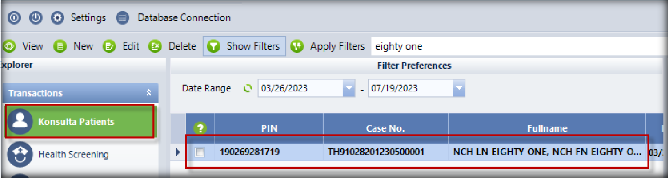 This feature validates whether the patient is already registered in Konsulta Patients.