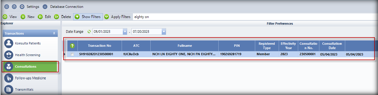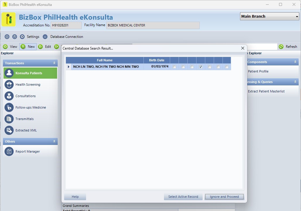 This feature empowers users to conduct transactions with Konsulta Patient across one or multiple branches.