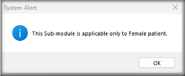 NOTE: For Female patient only. This module will be disabled if the patient is Male