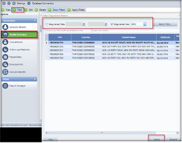 - Click on Create New. The system will load the patients from Konsulta Patients with Health Screening Record.