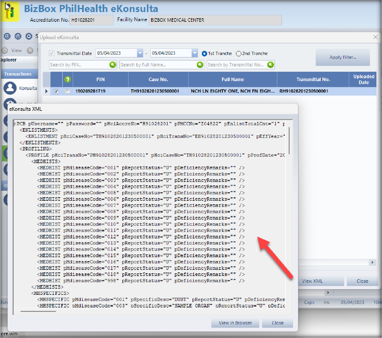 - Click on Upload Registration Masterlist to sync the patients to Bizbox eKonsulta.