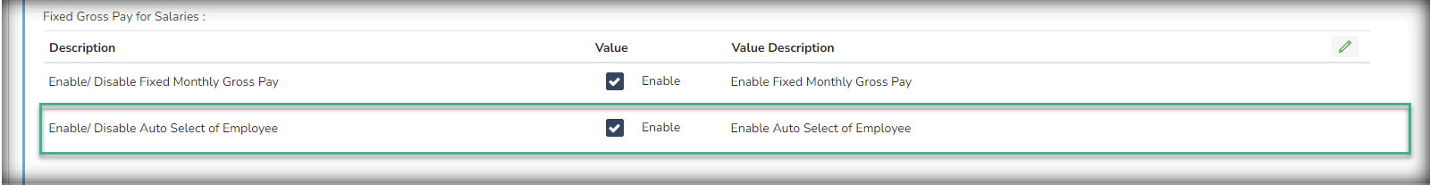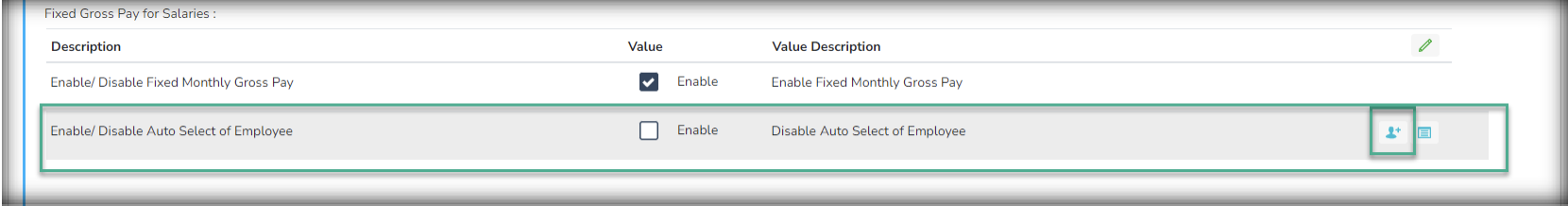 By enabling the Auto Select of Employee, the current setup of fixed gross pay will apply to all employees that have monthly setup, and earning salaries setup will be set as fixed gross pay.