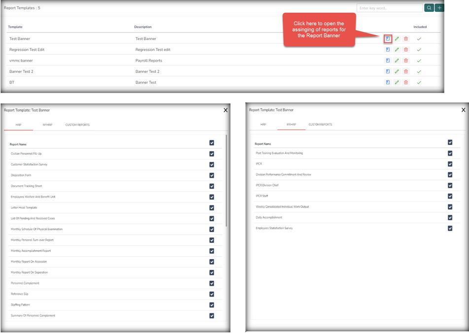 Assigning of Report Banner templates to HRP and MyHRP reports is now available, all selected reports will now reflect the image uploaded in the Header and Footer of the Report Banner Template.
