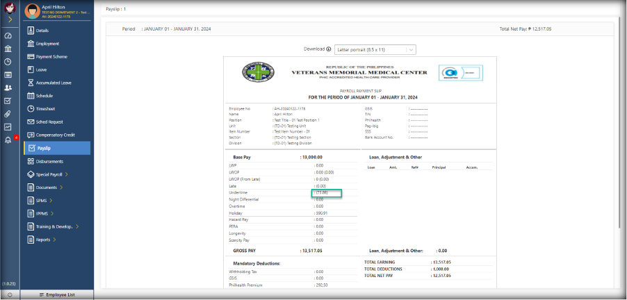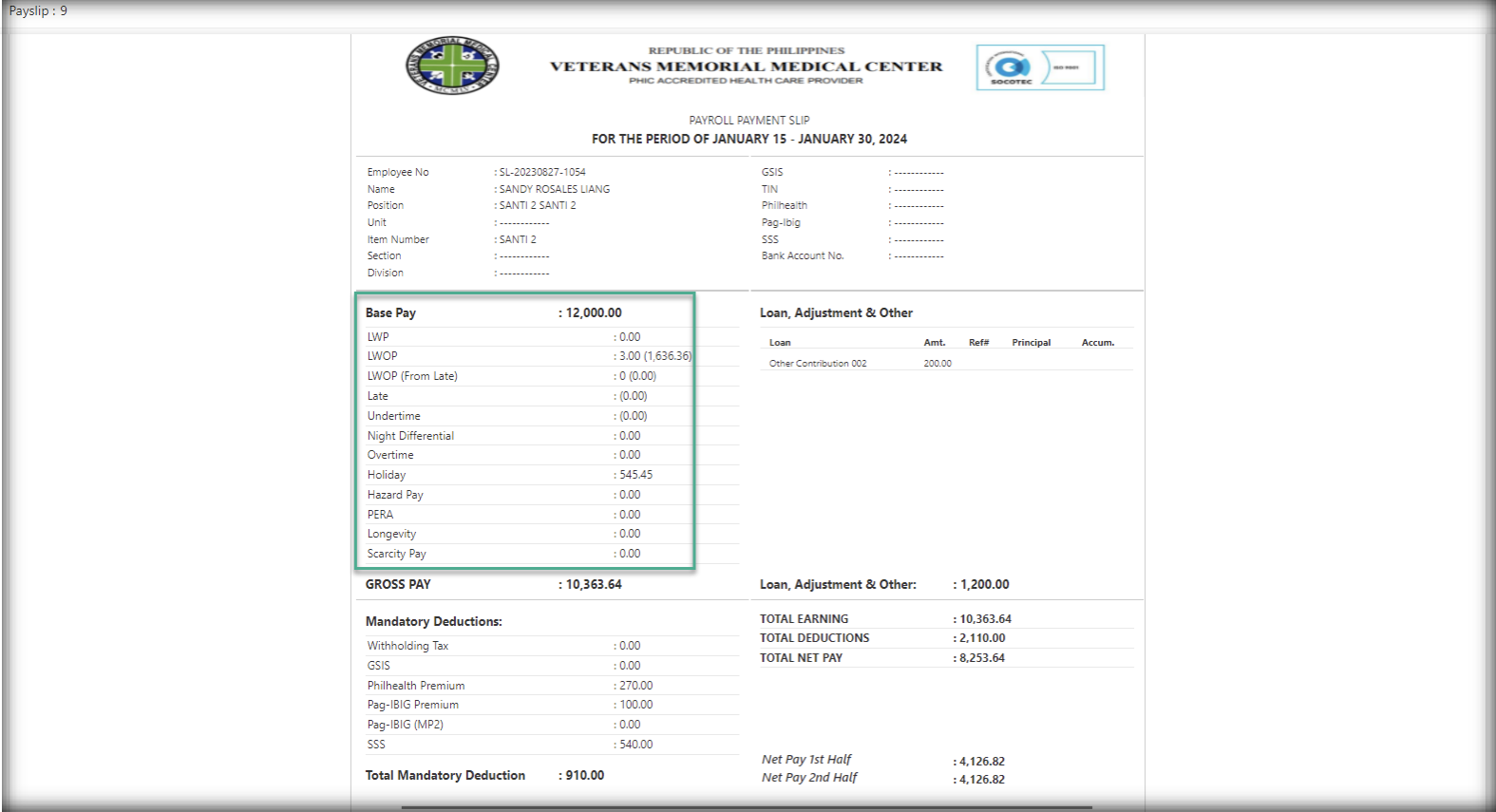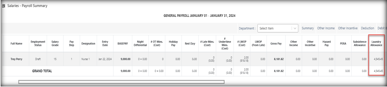 The total from the Salary Grade Base Percentage will now be reflected in the Appointment Form.