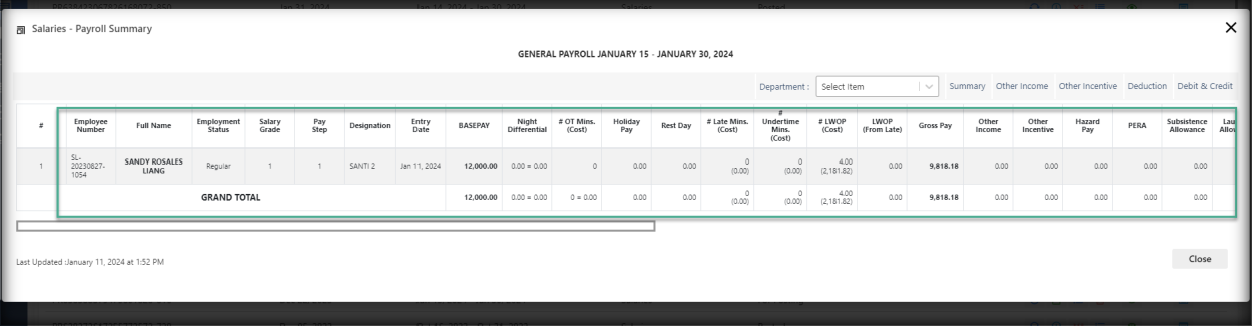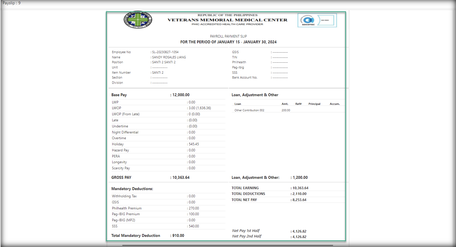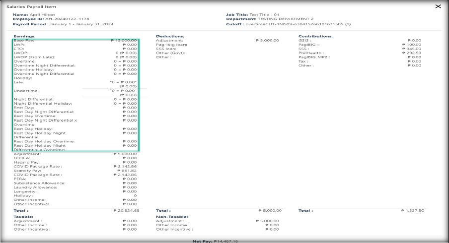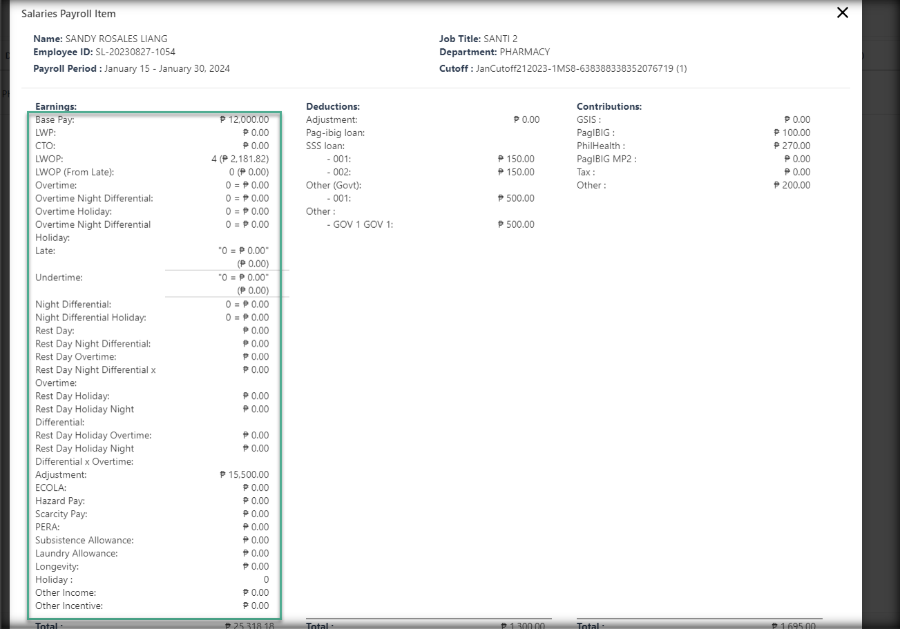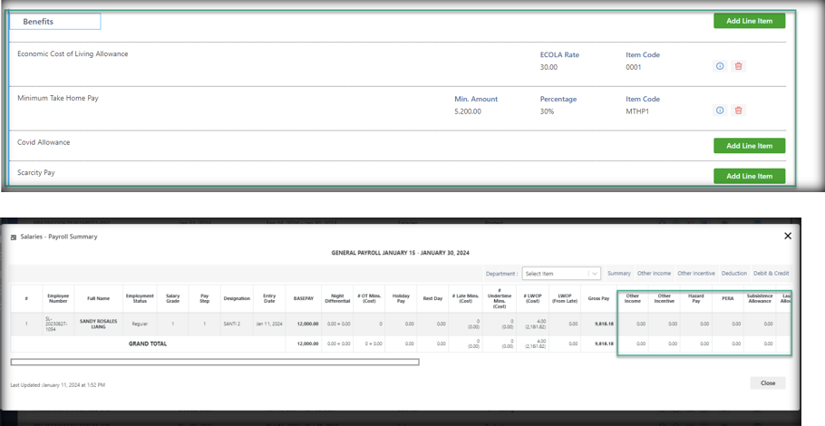 · Fixed the issue of computation of COS Payroll with decimal values.