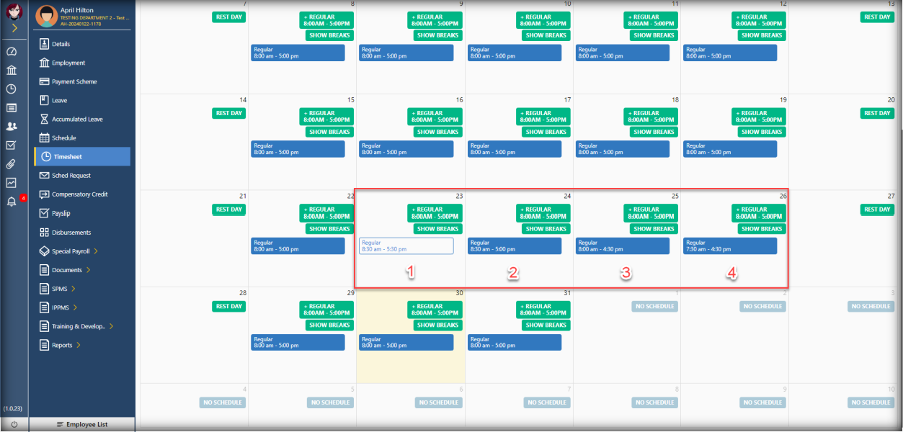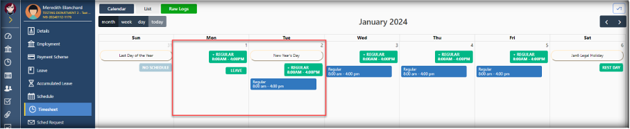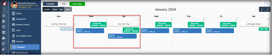 · If employees have time in & out in timesheet with holiday, holiday indication in DTR will not be display.