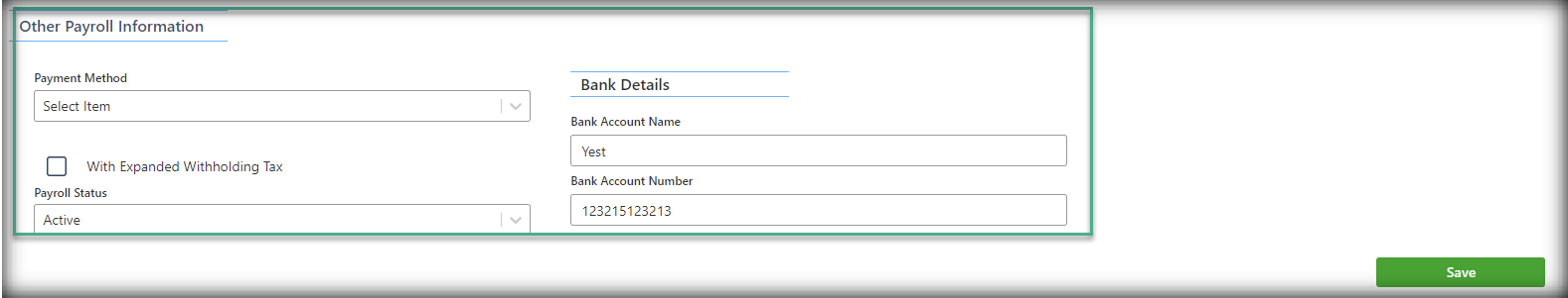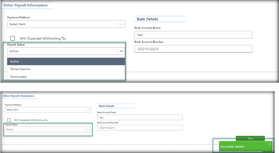 System Setup - Setup and Options – Payroll – Payroll Generation – Employee Tagging To exclude or include employees in payroll generation via tagging Payroll Status in Employment Details.