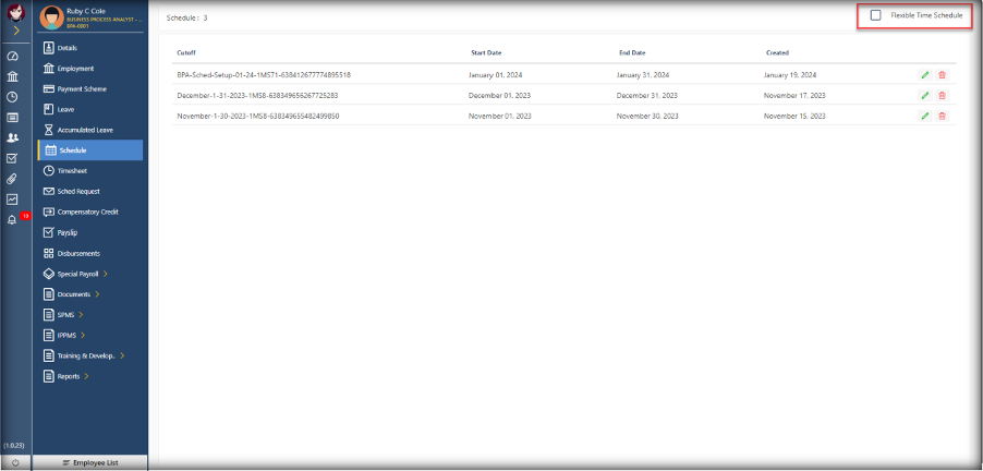 NOTE: Tagging of Flexible Time Policy is in HRP - Employee Profile - Schedule - Flexible Time Schedule Tagging.