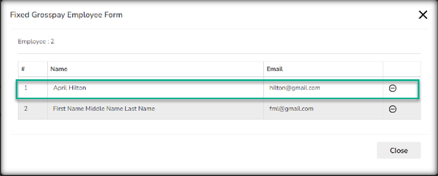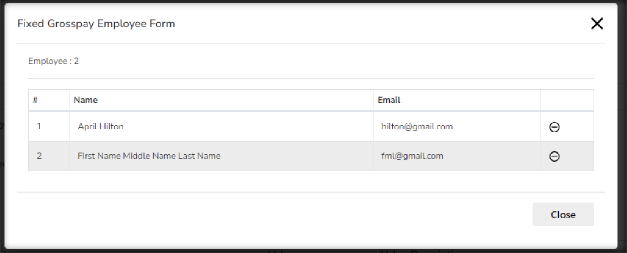 In this modal we can select a employee to be assigned in fixed gross pay.