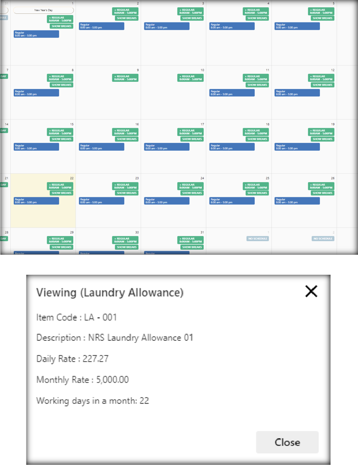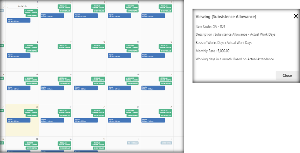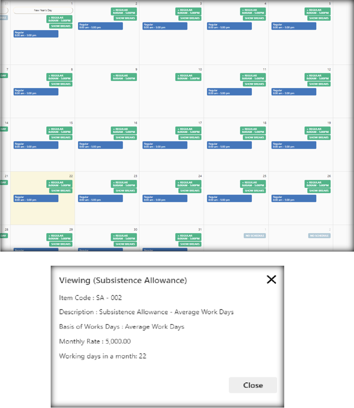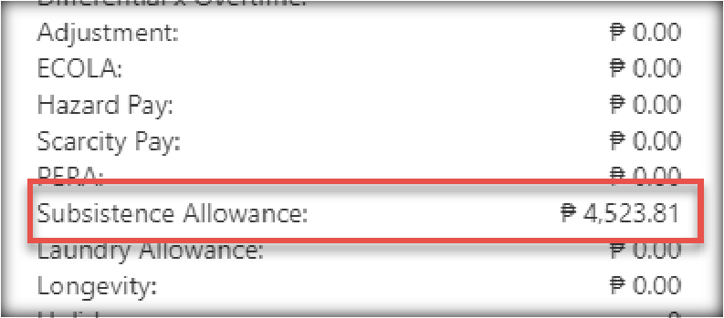 Note: Sample is from Subsistence Allowance – Actual Work Days