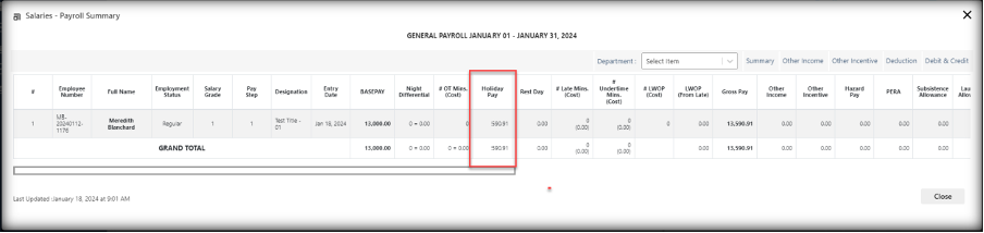 Payroll – Salaries & Wages – Holiday Pay Entitlement Computation
