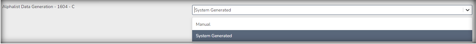 Setup and Options – BIR Related Setup – Alphalist Data Generation-1604-C