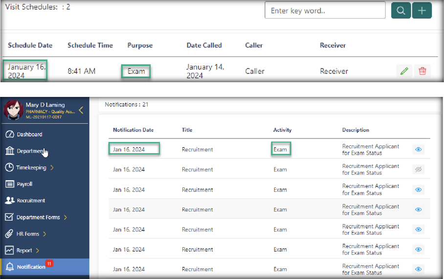 By clicking the “eye” button, the user will be directed to Recruitment > Applicant Details. Note: Notification count is based on active “eye” icon that is currently active.