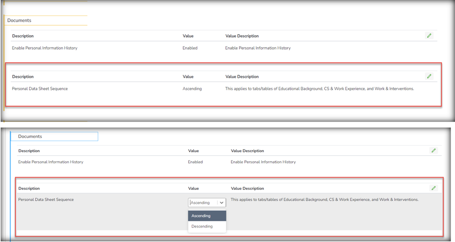 A new setup for PDS to change the sequence of data entries of Educational Background, CS & Work Experience, and Work & Interventions. This will affect both the main form and the printout.