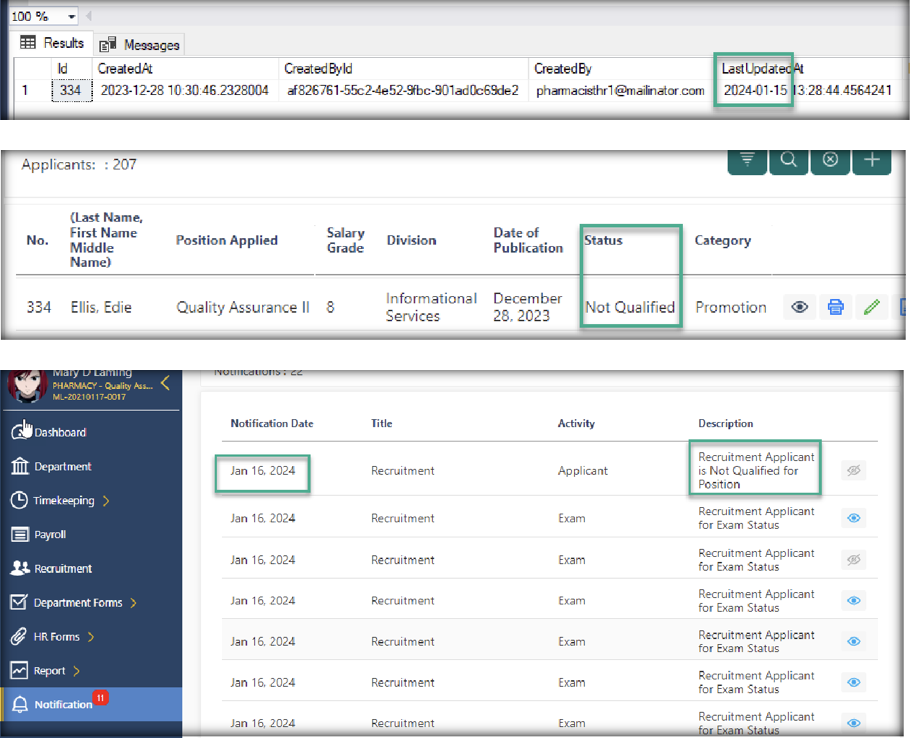 Data that will be included in the notification are Recruitment entries with Not Qualified