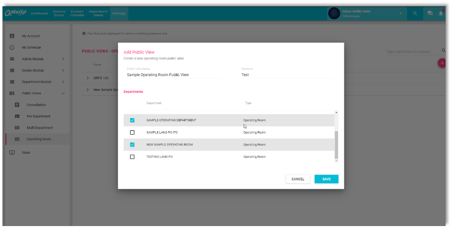 QMU Facility - EAMC- Public View -Add New Operating Room Public View