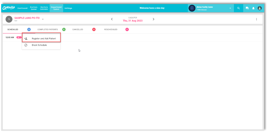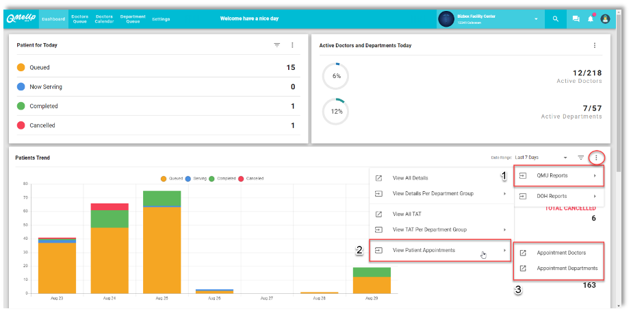 QMU Facility - Dashboard - Add New Appointment Report