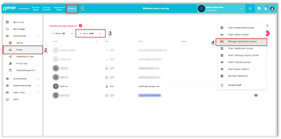 QMU Facility - DRMC - Set Assign Department Access