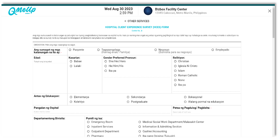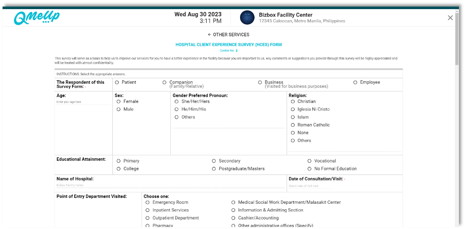 QMU Facility - EAMC - Kiosk - Survey Form Enhancement