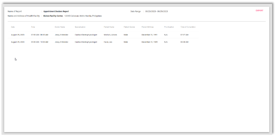 This is the actual view once you select for Appointment Doctors