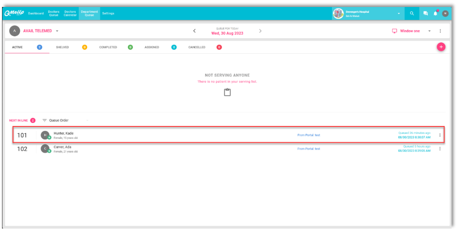 For this enhancement, includes the following changes to the Queue card in the Department Queue.