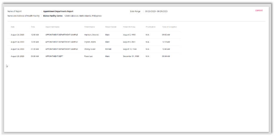 This is the actual view once you select for Appointment Department