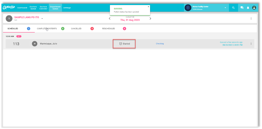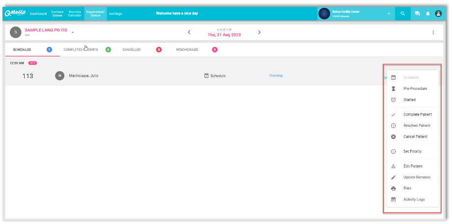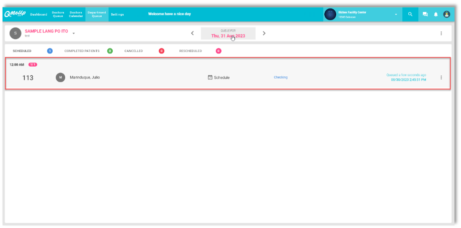 QMU Facility - Enhancement of Queue Card of Department Queue