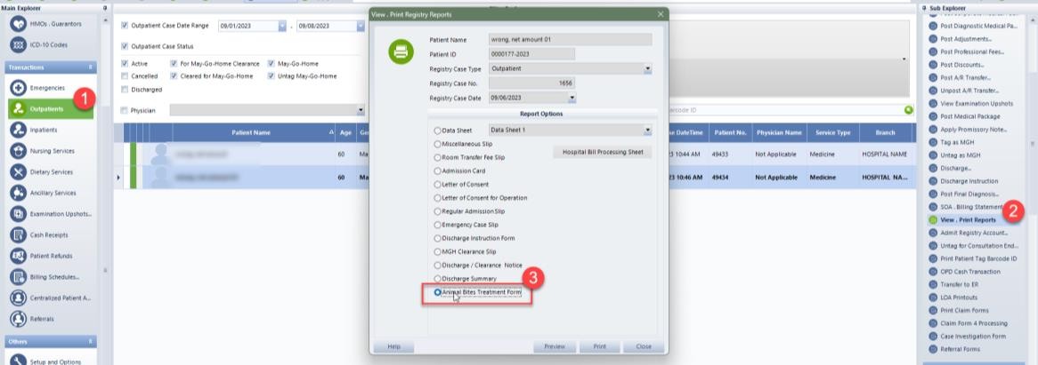 2. The Animal Bites treatment report will be visible in the "View Print Report" section within the OPD module from now on.