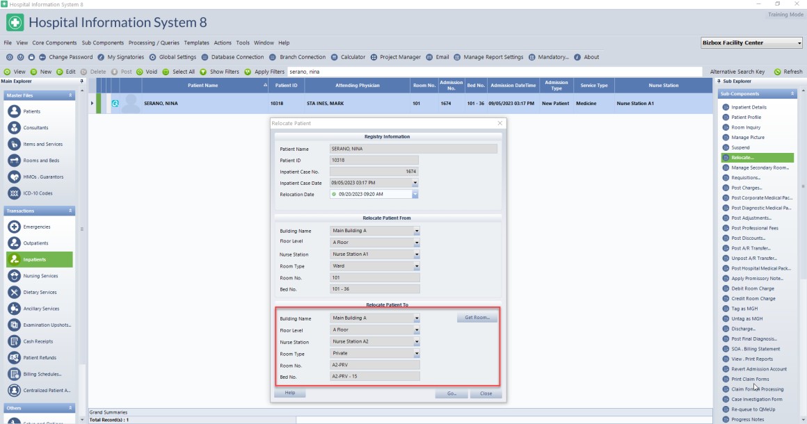 When a mother is ready for discharge, clicking the 'Discharge' button will prompt the system to inquire whether the newborn should remain in the mother's room for care, known as rooming-in for sick infants.