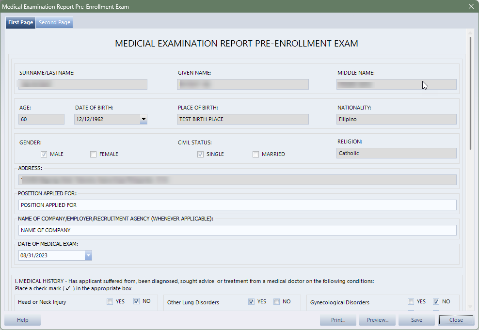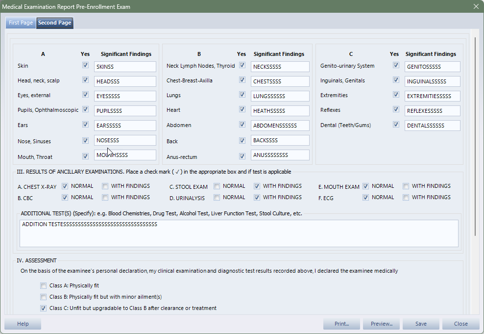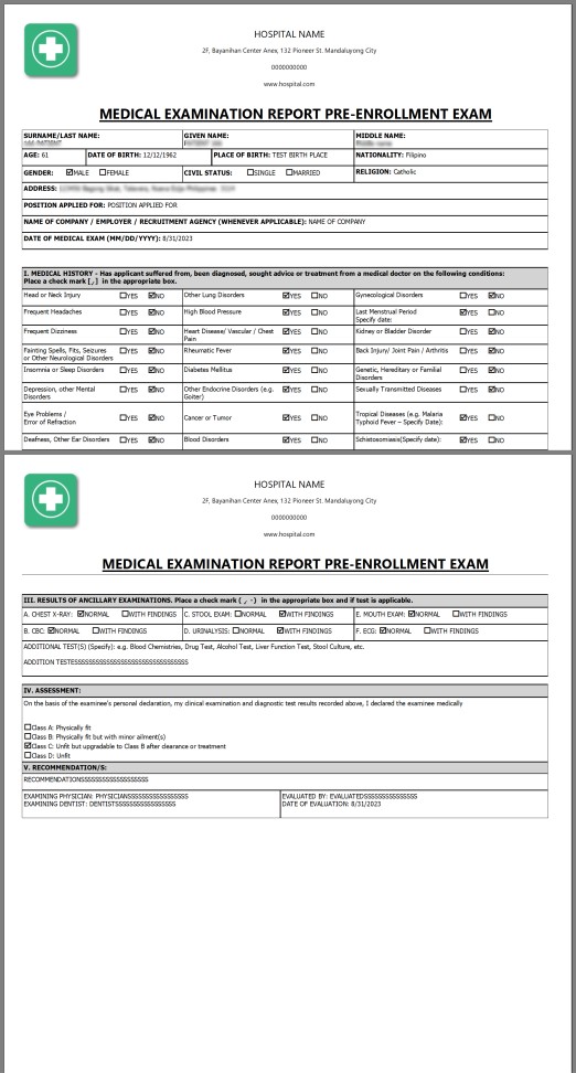 REPORTS - MEDICAL EXAMINATION PRE-ENROLLMENT EXAM