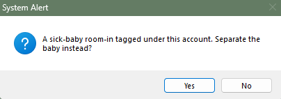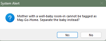 2. The system will prompt a validation message. If YES, tagging of discharge will not procced unless baby room-in will be separated from the mother's room. If NO,