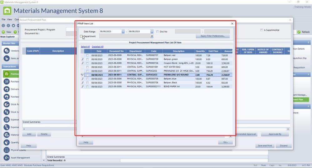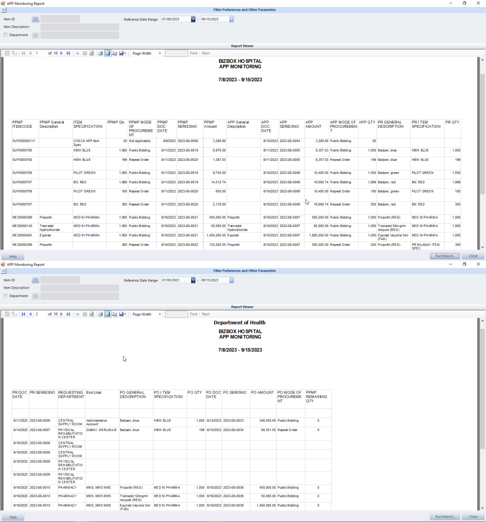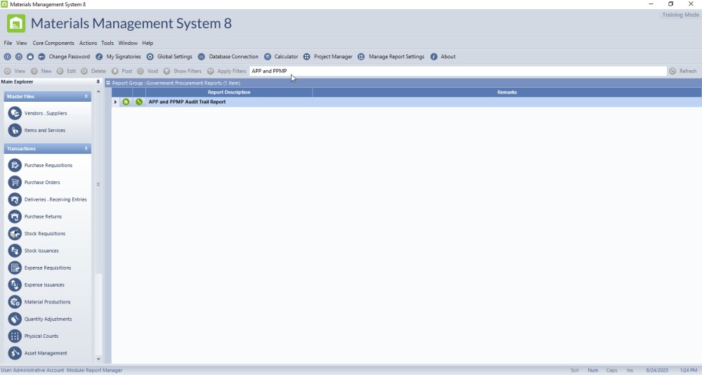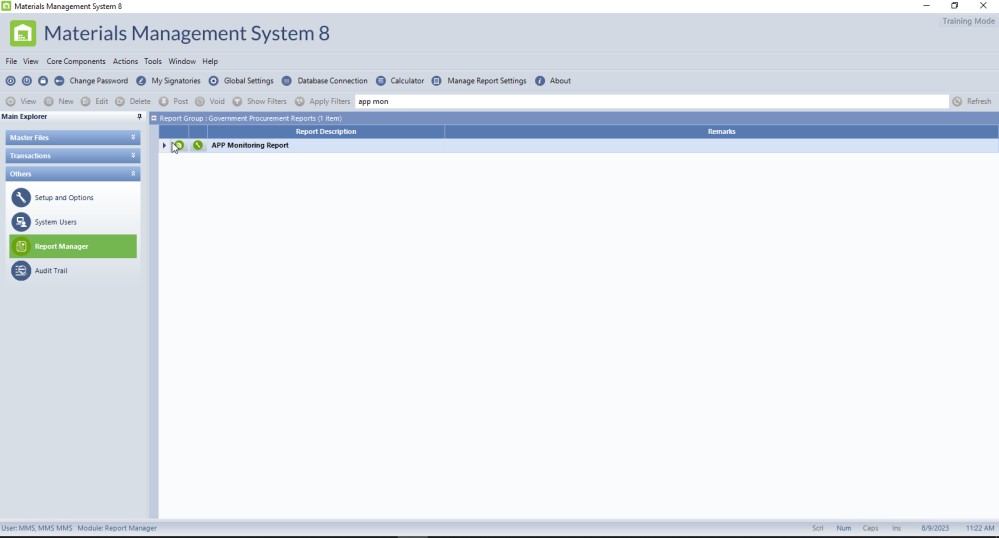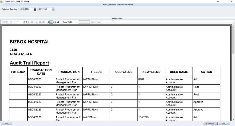 This Feature adds “APP and PPMP Audit Trail Report” in the Report Manager Module of MMS Application. AUDIT TRAIL DETAILS WILL ONLY TAKE EFFECT UPON EXE UPDATE (NOT RETROACTIVE). THUS, CHANGES IN THE PREVIOUS PPMP AND APP RECORDS PRIOR TO UPDATE CANNOT BE CAPTURED BY THIS REPORT. HOSPITAL MUST BE IMPLEMENTED AS GOVERNMENT HOSPITAL