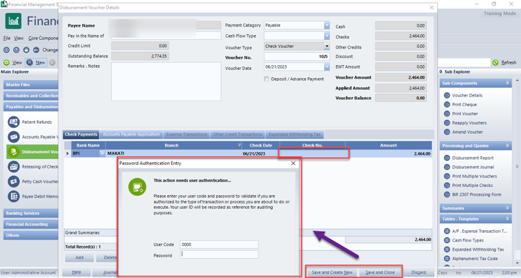 Disbursement Vouchers - Allow saving of Check Disbursement with blank Check No.